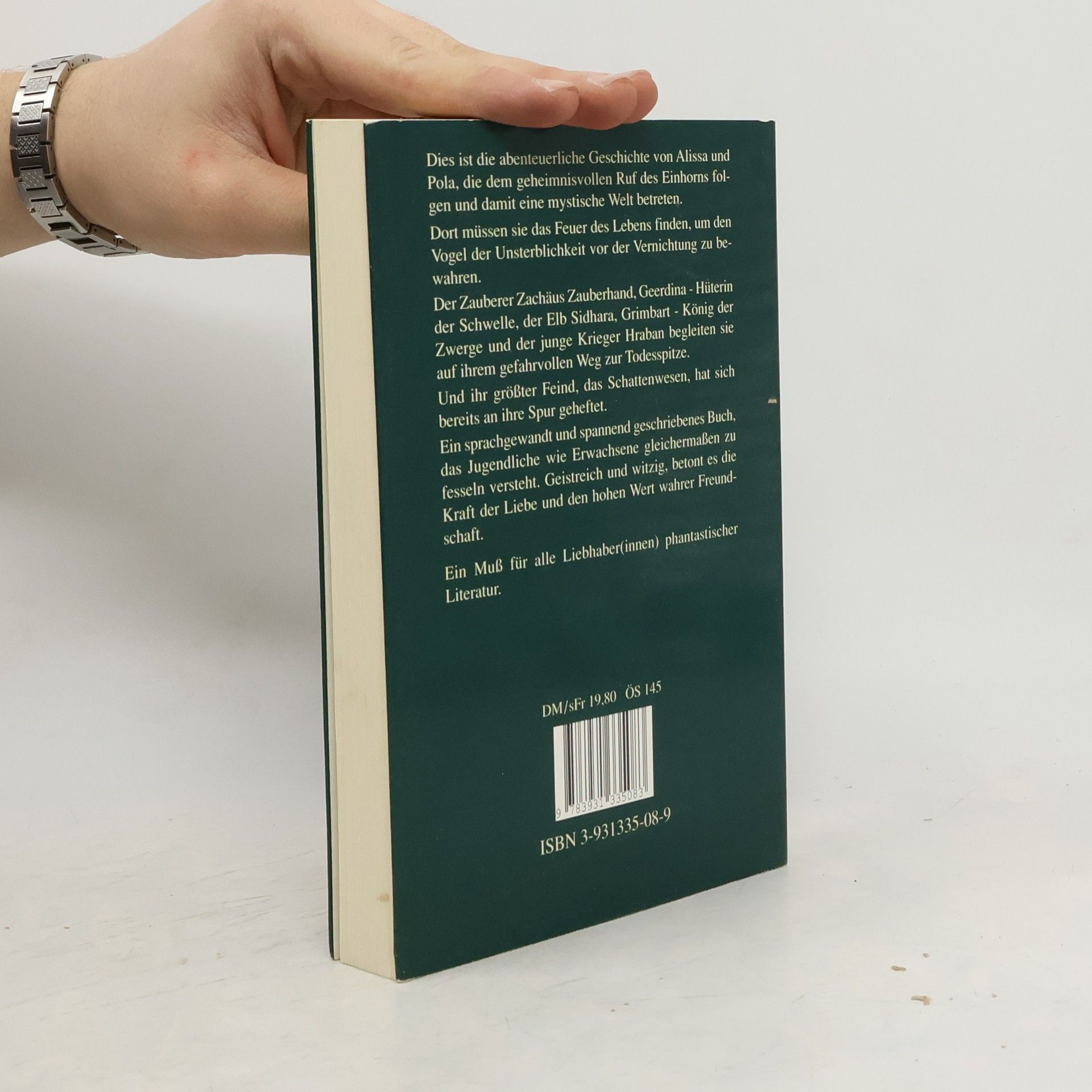 Dies ist die abenteuerliche Geschichte von Alissa und Pola, die dem geheimnisvollen Ruf des Einhorns folgen und damit eine mystische Welt betreten. Dort müssen sie das Feuer des Lebens finden, um den Vogel der Unsterblichkeit vor der Vernichtung zu bewahren. Der Zauberer Zachäus Zauberhand, Geerdina - Hüterin der Schwelle, der Elb Sidhara, Grimbart - König der Zwerge und der junge Krieger Hraban begleiten sie auf ihrem gefahrvollen Weg zur Todesspitze. Und ihr größter Feind, das Schattenwesen, hat sich bereits an ihre Spur geheftet. Ein sprachgewandt und spannend geschriebenes Buch, das Jugendliche wie Erwachsene gleichermaßen zu fesseln versteht. Geistreich und witzig, betont es die Kraft der Liebe und den hohen Wert wahrer Freundschaft. Ein Muß für alle Liebhaber(innen) phantastischer Literatur.