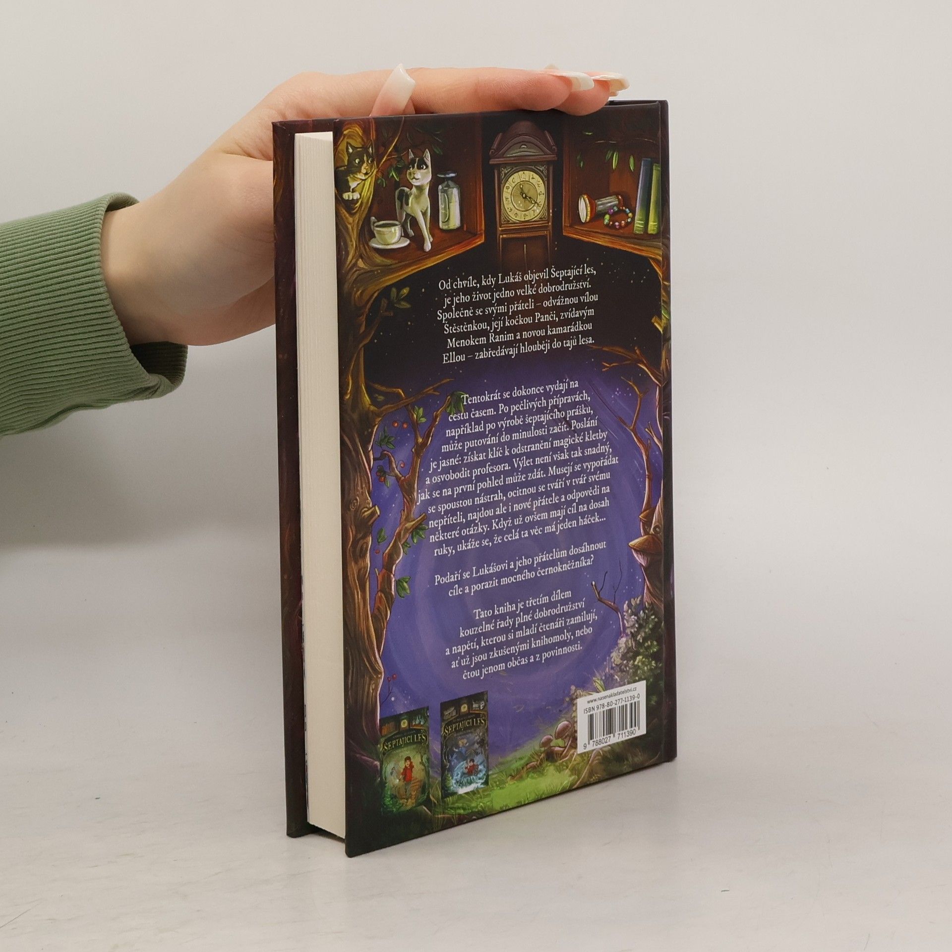 Od chvíle, kdy Lukáš objevil Šeptající les, je jeho život jedno velké dobrodružství. Společně se svými přáteli – odvážnou vílou Štěstěnkou, její kočkou Panči, zvídavým menokem Ranim a novou kamarádkou Ellou – zabředávají stále hlouběji do tajů lesa.Tentokrát se dokonce vydají na cestu časem. Po pečlivých přípravách, jako je například výroba šeptajícího prášku, může jejich putování do minulosti začít. Poslání má jasný cíl: najít a získat klíč k odstranění magické kletby a osvobodit profesora. Jejich výlet není však tak snadný, jak se na první pohled může zdát. Musejí se vypořádat s řadou nástrah, ocitnou se tváří v tvář svému nepříteli, mocnému černokněžníkovi, najdou ale i nové přátele a odpovědi na některé své otázky. Když už mají cíl na dosah ruky, ukáže se, že celá ta věc má ale háček...Podaří se Lukášovi a jeho přátelům dosáhnout cíle a porazit černokněžníka?