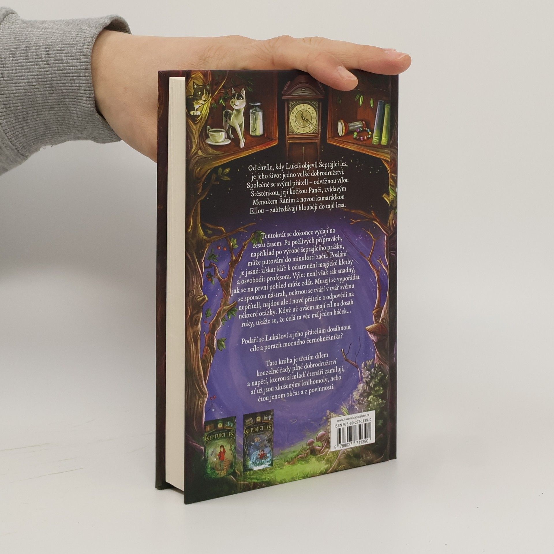Od chvíle, kdy Lukáš objevil Šeptající les, je jeho život jedno velké dobrodružství. Společně se svými přáteli – odvážnou vílou Štěstěnkou, její kočkou Panči, zvídavým menokem Ranim a novou kamarádkou Ellou – zabředávají stále hlouběji do tajů lesa.Tentokrát se dokonce vydají na cestu časem. Po pečlivých přípravách, jako je například výroba šeptajícího prášku, může jejich putování do minulosti začít. Poslání má jasný cíl: najít a získat klíč k odstranění magické kletby a osvobodit profesora. Jejich výlet není však tak snadný, jak se na první pohled může zdát. Musejí se vypořádat s řadou nástrah, ocitnou se tváří v tvář svému nepříteli, mocnému černokněžníkovi, najdou ale i nové přátele a odpovědi na některé své otázky. Když už mají cíl na dosah ruky, ukáže se, že celá ta věc má ale háček...Podaří se Lukášovi a jeho přátelům dosáhnout cíle a porazit černokněžníka?