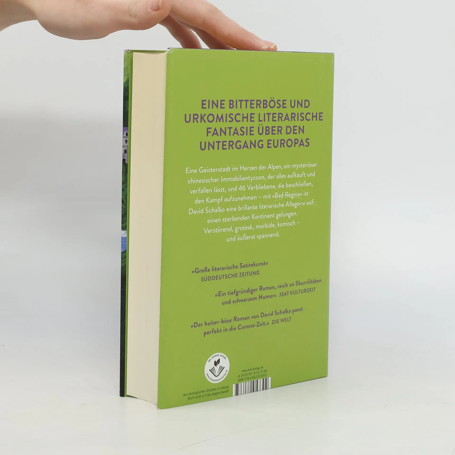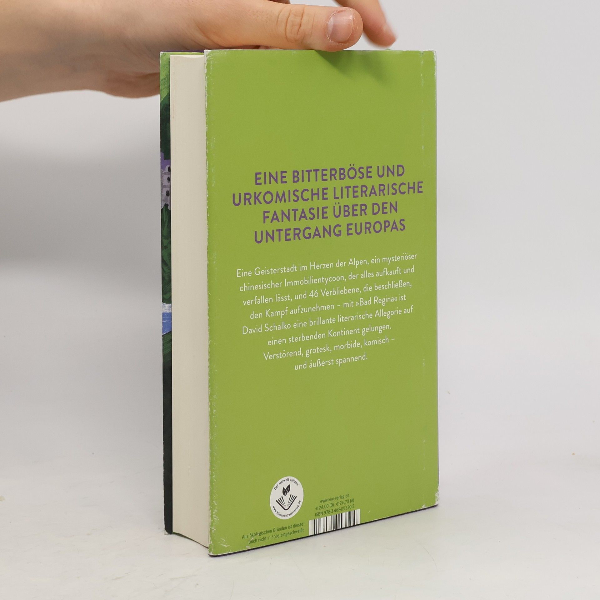 Eine bitterböse und urkomische literarische Fantasie über den Untergang Europas. In einer Geisterstadt im Herzen der Alpen leben nur noch wenige Menschen, die auf die Ruinen ihres einst glamourösen Touristenorts starren und tatenlos beim Verschwinden zusehen. Ein mysteriöser chinesischer Immobilienmagnat namens Chen kauft seit Jahren ihre Häuser für horrende Summen, nur um sie verfallen zu lassen. Als er auch das Schloss des alten Adels erwerben will, beschließt Othmar, der von Gicht geplagte Betreiber des berühmtesten Partyklubs der Alpen, herauszufinden, was Chen mit Bad Regina vorhat. Dabei erleben Othmar und die verbliebenen Einwohner eine böse Überraschung. David Schalko entwirft eine faszinierende Geisterwelt, in der die verbliebenen Bewohner und Bauwerke wankende Ruinen der Vergangenheit sind. Der Roman ist verstörend, grotesk und komisch zugleich und bietet eine spannende Allegorie auf einen sterbenden Kontinent. Es wird ein Europa thematisiert, das immer wieder moralisch versagt, während andere über seine Zukunft entscheiden.