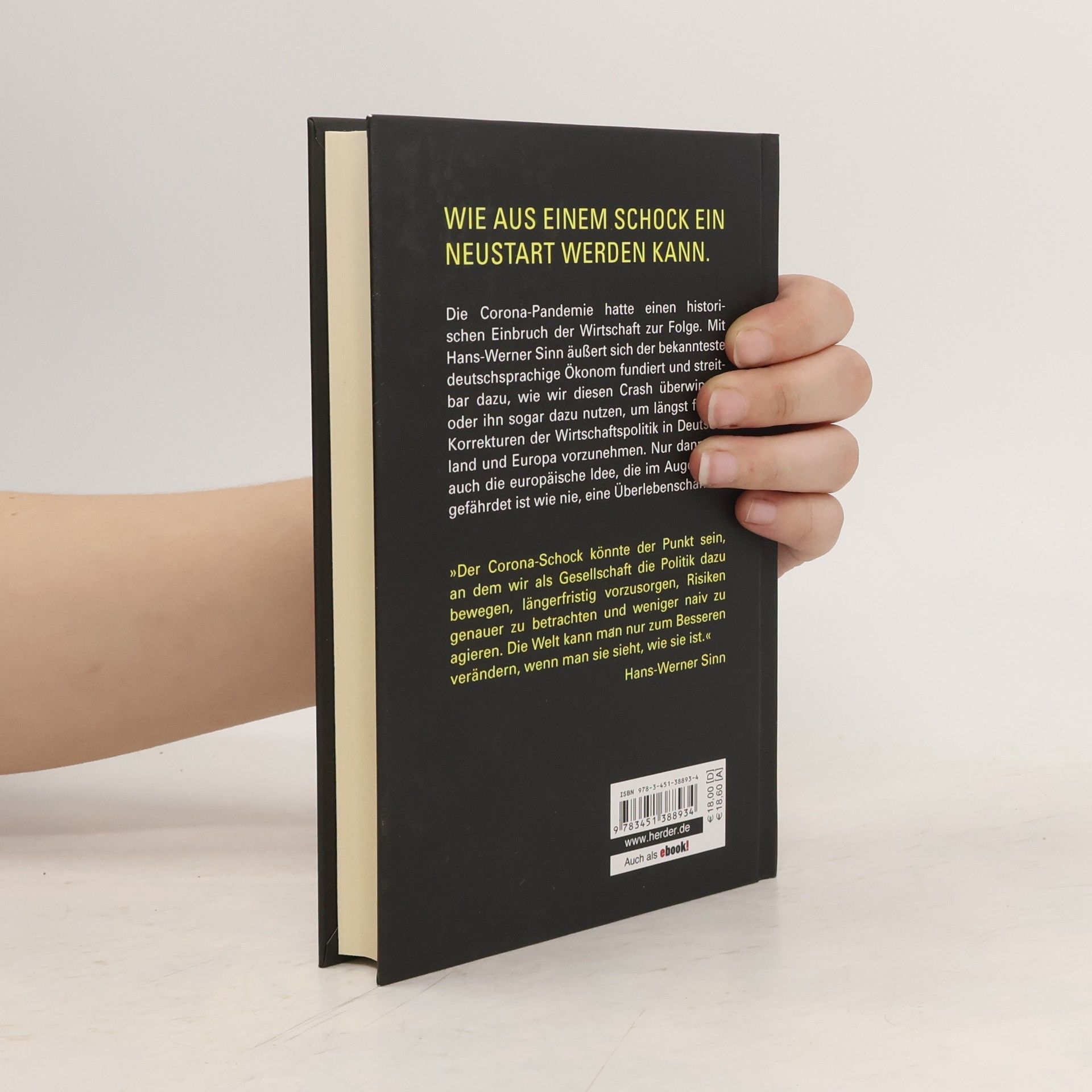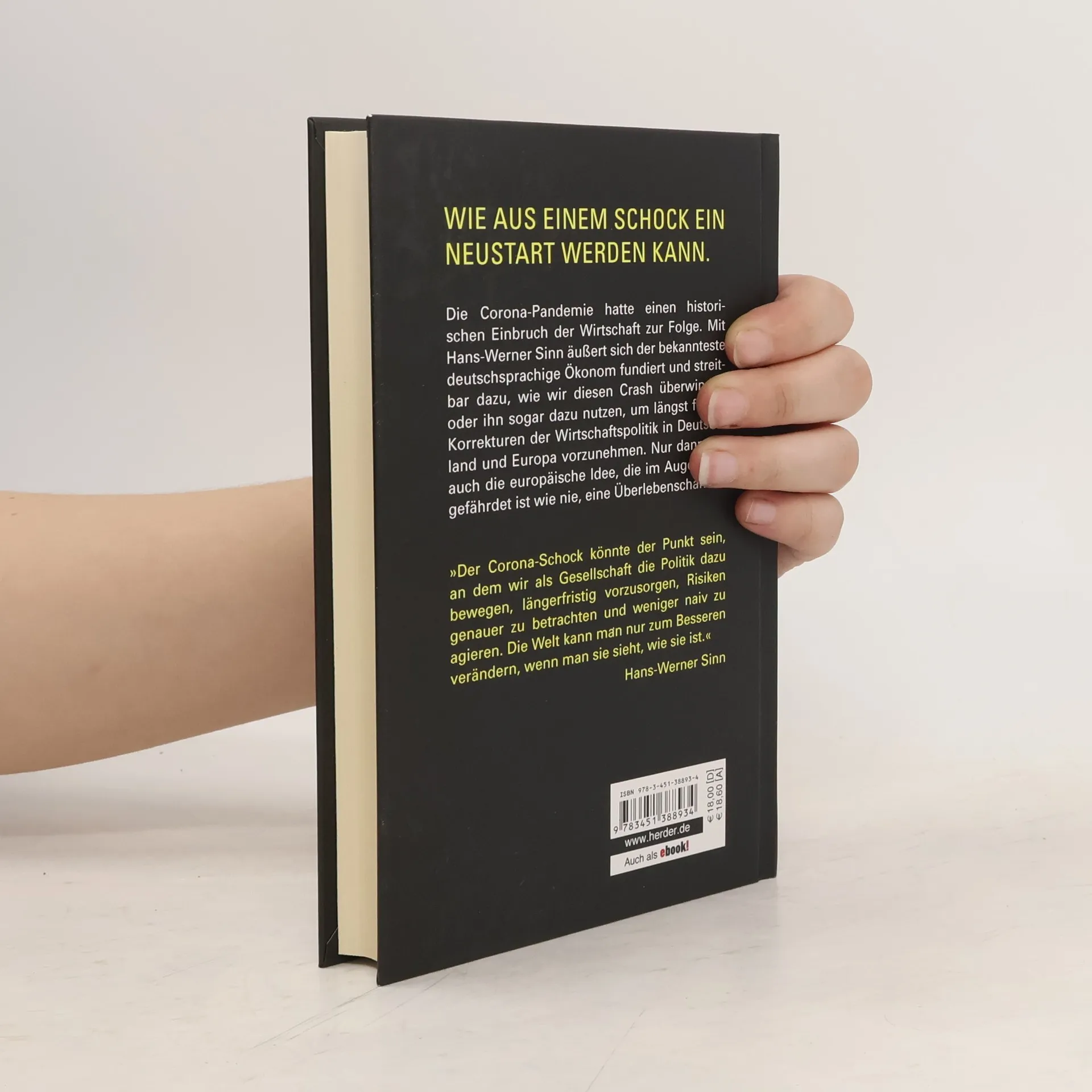 Die Corona-Krise ist der tiefste wirtschaftliche Einbruch in Friedenszeiten seit der Weltwirtschaftskrise vor 90 Jahren. Die neue Krise trifft auf eine ohnehin schwächelnde europäische Wirtschaft. Wie erhalten wir unseren Wohlstand? Wie vermeiden wir einen ökonomischen Absturz mit Massenarbeitslosigkeit und Radikalisierung der Politik? Und gibt es einen Weg, den Kontinent zu alter Prosperität zurückzuführen und die Staaten politisch zu stabilisieren? Mit Hans-Werner Sinn äußert sich der bekannteste deutschsprachige Ökonom fundiert und kompakt dazu, wie wir diesen beispiellosen ökonomischen Crash überwinden und ihn dazu nutzen, längst fällige Strukturprobleme der europäischen Wirtschaft und des Geldwesen anzupacken. Nur dann hat auch die europäische Idee, die im Augenblick gefährdet ist wie nie, eine Überlebenschance. Ein wegweisendes und mutiges Zukunftsprogramm zur richtigen Zeit.