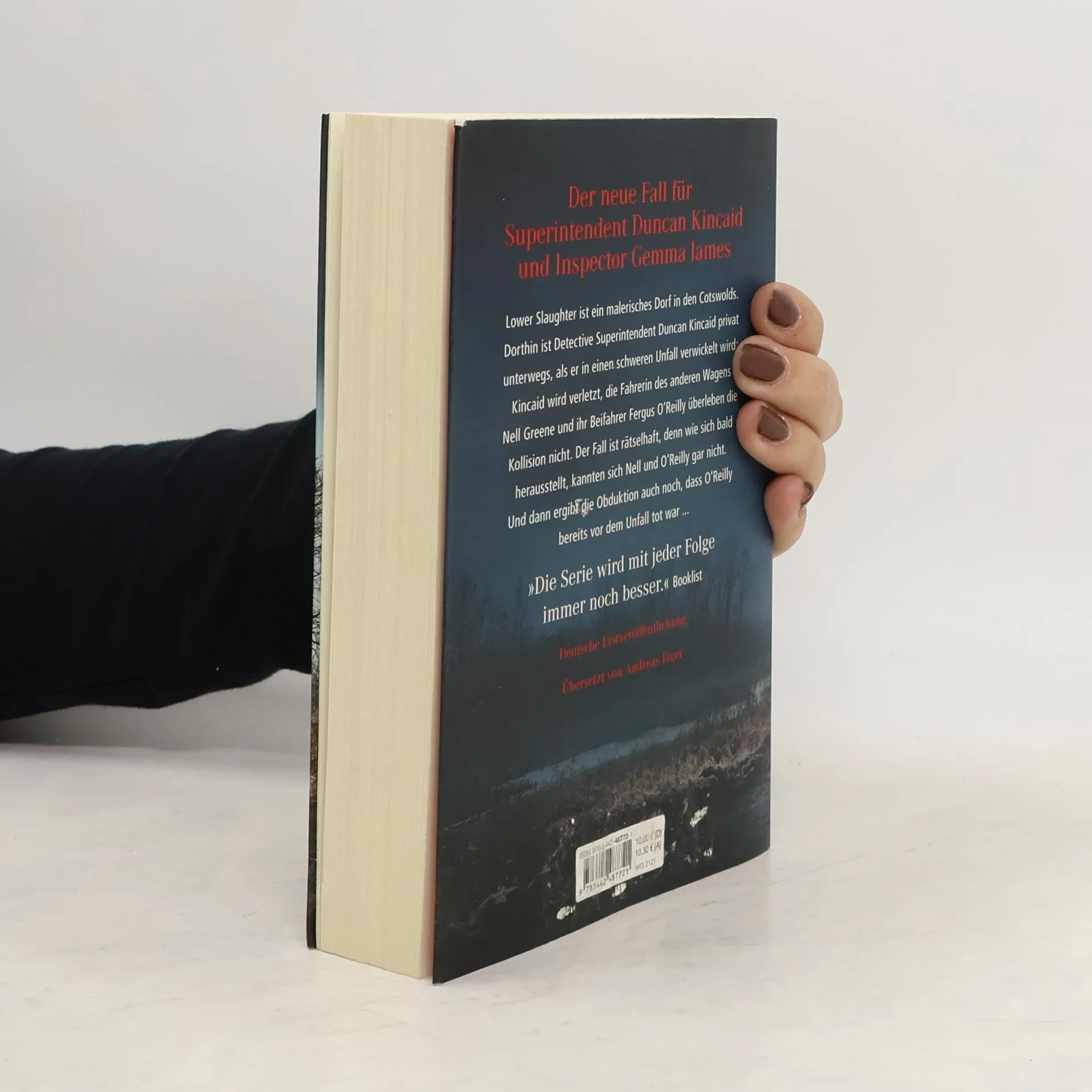 Lower Slaughter ist ein malerisches Dorf in den Cotswolds. Dorthin ist Detective Superintendent Duncan Kincaid privat unterwegs, als er in einen schweren Unfall verwickelt wird: Kincaid wird verletzt, die Fahrerin des anderen Wagens, Nell Greene, und ihr Beifahrer Fergus O'Reilly überleben die Kollision nicht. Wie sich bald herausstellt, kannten sich Nell und O'Reilly gar nicht, hatten aber beide kurz vor dem Unglück im Pub von Viv Holland gegessen – der Chefköchin, zu deren Benefizessen am Wochenende Kincaid und James eingeladen sind. Der Fall wird immer rätselhafter, denn die Untersuchung ergibt, dass O'Reilly bereits vor dem Unfall tot war ... Der neue Fall aus der Bestseller-Serie um Duncan Kincaid und Gemma James.