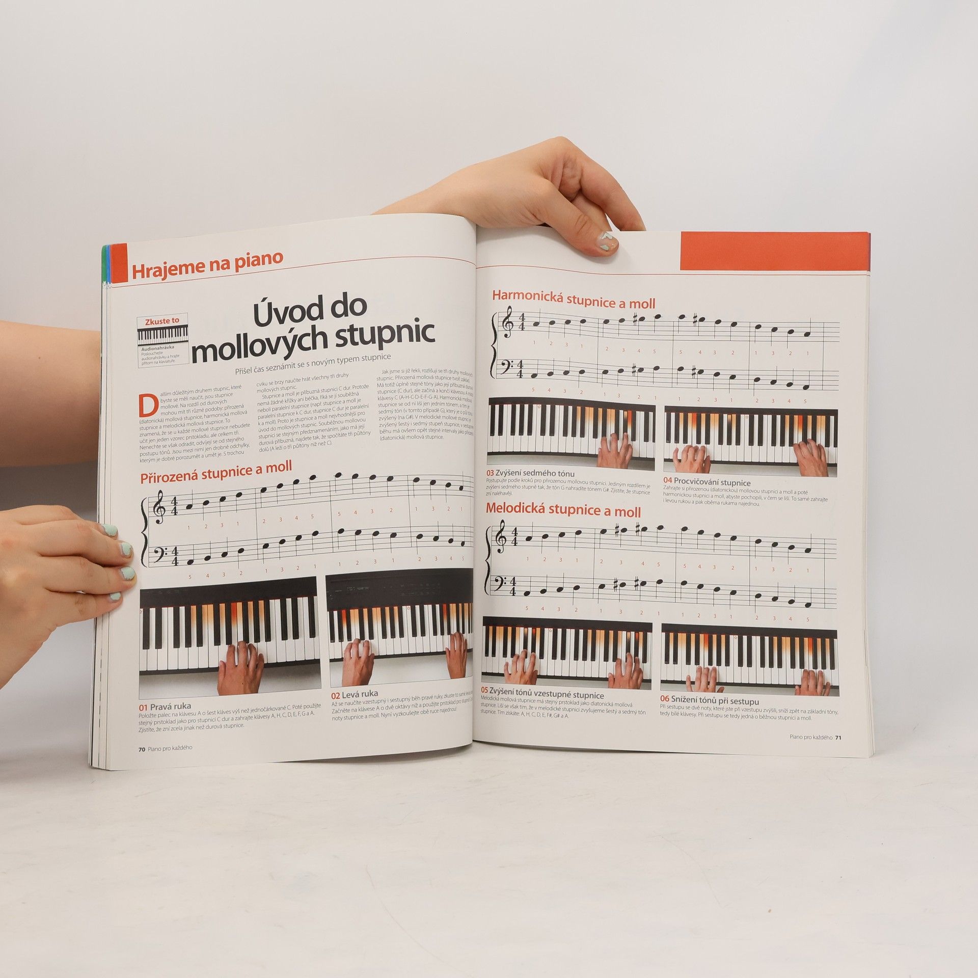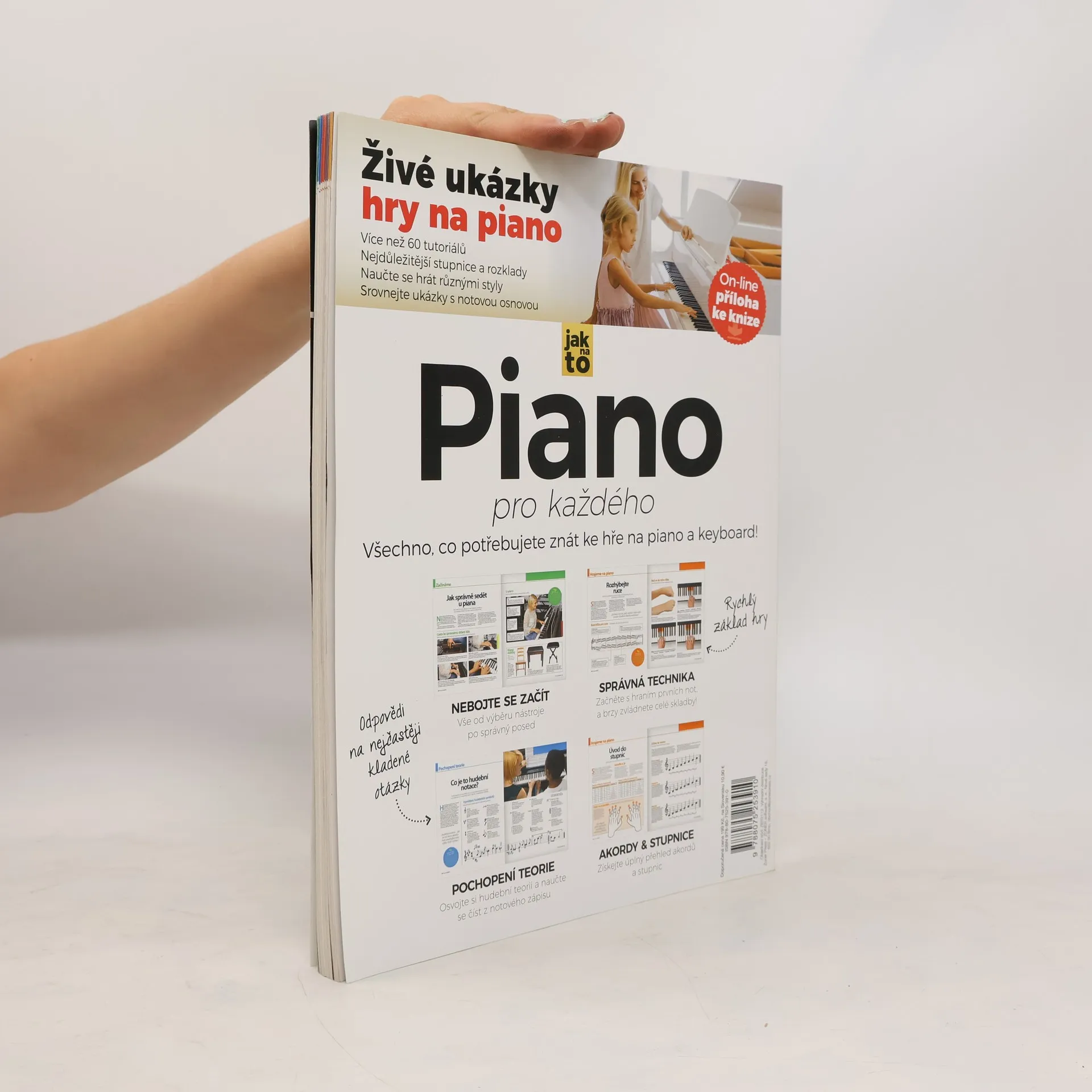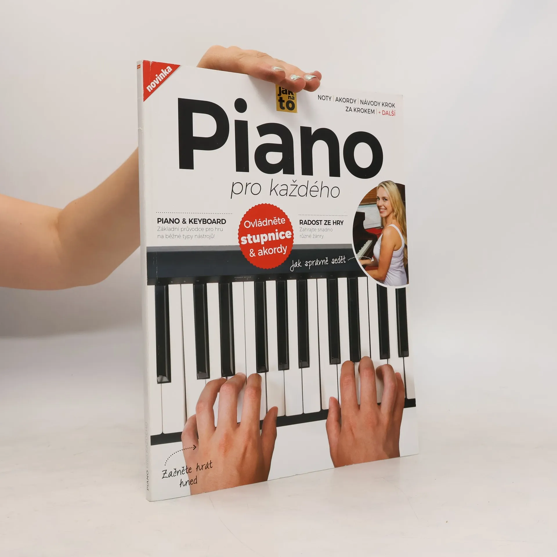 Základní vizuální průvodce hrou na piano a keyboard pro začátečníky i věčné začátečníky. Objevte své hudební nadání a naučte se zahrát na piano stupnice, písničky i pokročilá díla. Naučit se hrát na hudební nástroj může být rozmar, stejně jako dlouhodobý cíl. A i když už se jednou rozhodnete, mohou vás přepadat obavy. Každému totiž dojde, jak náročný před sebou má úkol. I proto je tady příručka Piano pro každého. Díky tomu, že jsme celý proces zjednodušili do návodů krok za krokem, vám tato publikace pomůže získat základy. Dozvíte se, jak u piana sedět, a postupně se naučíte také číst z not. Zdokonalování přijde i díky tipům pro snadné domácí nahrávání a názorným návodům na hraní skladeb různých žánrů. Se slovníčkem základní terminologie, přehledem stupnic, akordů a přístupem k on-line zdrojům se Piano pro každého brzy stane vaším nepostradatelným průvodcem při seznamování se s hudebním světem. Dozvíte se spoustu tipů a rad pro začátečníky, které vám pomohou zlepšit a rozvinout dovednosti hry na piano. Tak položte prsty na klaviaturu a jdeme na to!