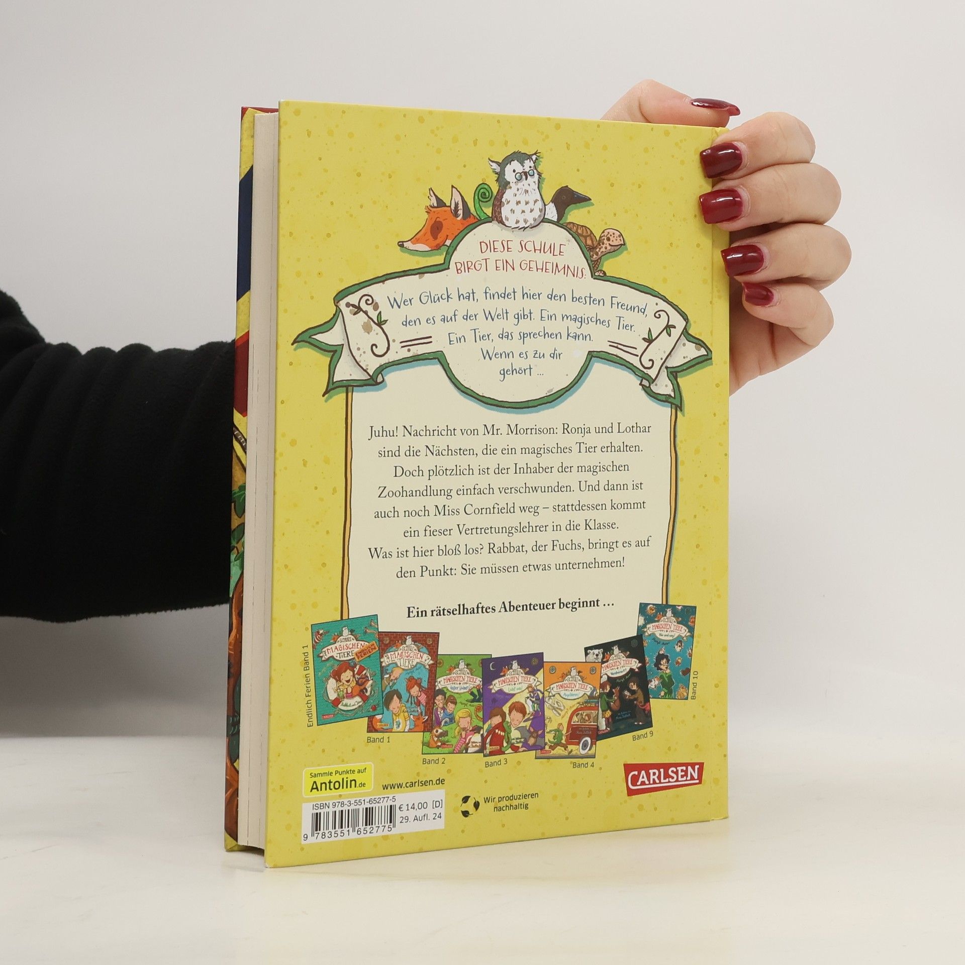 Jetzt kostenlos herunterladen – die App zur Serie! *** Wer in der Klasse wird heute ein magisches, sprechendes Tier erhalten? *** Juhu! Nachricht von Mr. Morrison, dem Inhaber der magischen Zoohandlung: Ronja und Lothar sind die Nächsten, die ein magisches Tier erhalten. Doch plötzlich ist Mr. Morrison einfach verschwunden. Und dann ist auch noch Miss Cornfield weg – stattdessen kommt ein fieser Vertretungslehrer in die Klasse. Was ist hier bloß los? Rabbat, der Fuchs, bringt es auf den Punkt: Sie müssen etwas unternehmen! *** DIE SCHULE DER MAGISCHEN TIERE Band 7: Diese Schule birgt ein Geheimnis: Wer Glück hat, findet hier den besten Freund, den es auf der Welt gibt. Ein magisches Tier. Ein Tier, das sprechen kann. Wenn es zu dir gehört ... *** Viele Bilder, viele kurze Kapitel, viel Lesespaß! Der siebte Band der beliebten Bestseller-Reihe!