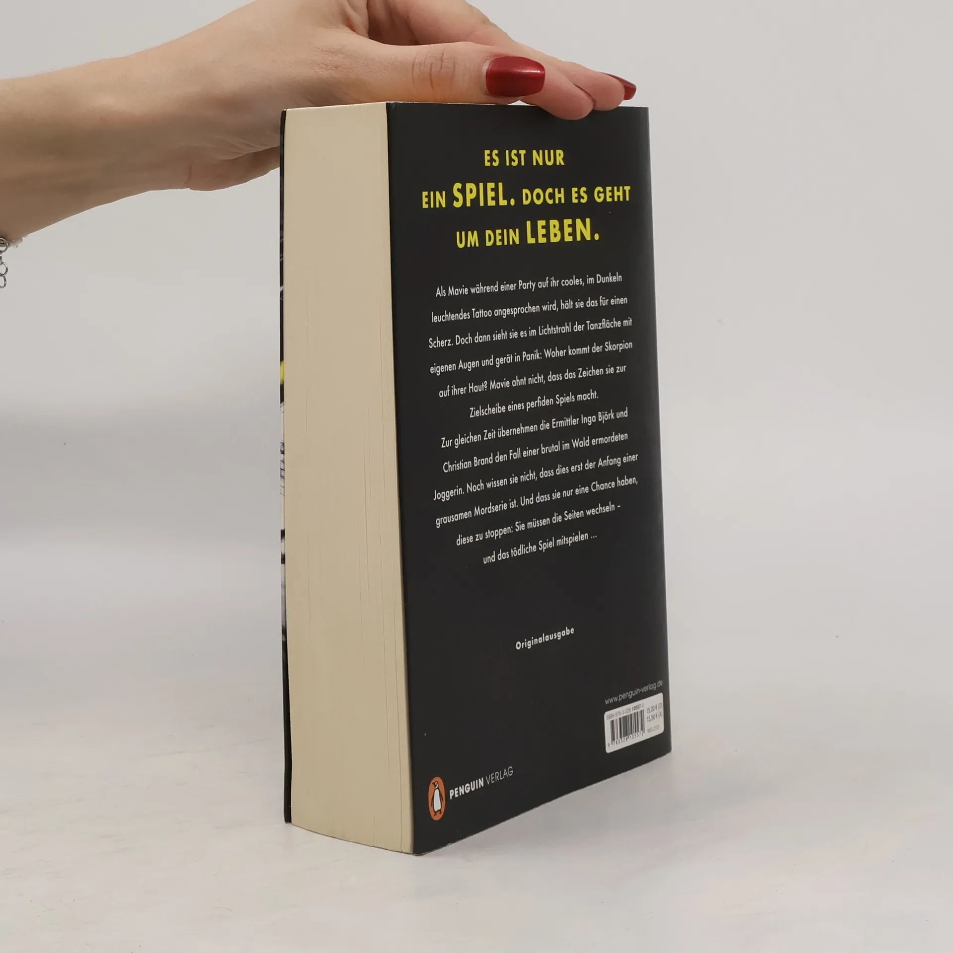 Sie jagen dich. Sie töten dich. Als Mavie während einer Party auf ihr cooles, im Dunkeln leuchtendes Tattoo angesprochen wird, hält sie das für einen Scherz. Doch dann sieht sie es im Lichtstrahl der Tanzfläche mit eigenen Augen und gerät in Panik: Woher kommt der Skorpion auf ihrer Haut? Mavie ahnt nicht, dass das Zeichen sie zur Zielscheibe eines perfiden Spiels macht. Zur gleichen Zeit übernehmen die Ermittler Inga Björk und Christian Brand den Fall einer brutal im Wald ermordeten Joggerin. Noch wissen sie nicht, dass dies erst der Anfang einer grausamen Mordserie ist. Und dass sie nur eine Chance haben, diese zu stoppen: Sie müssen die Seiten wechseln – und das tödliche Spiel mitspielen …