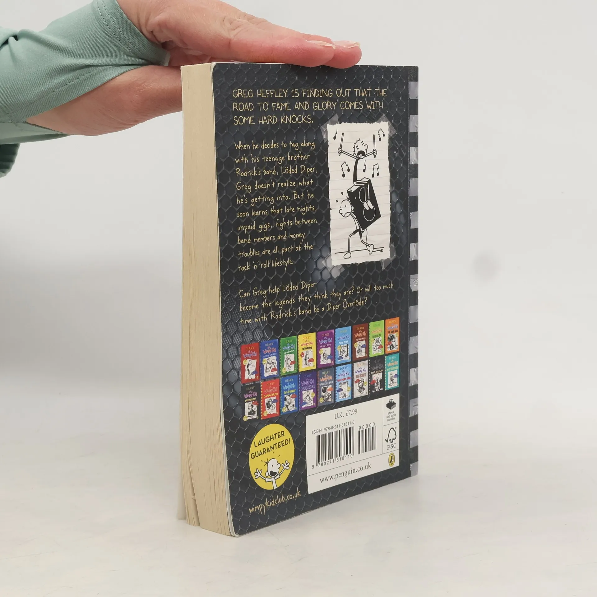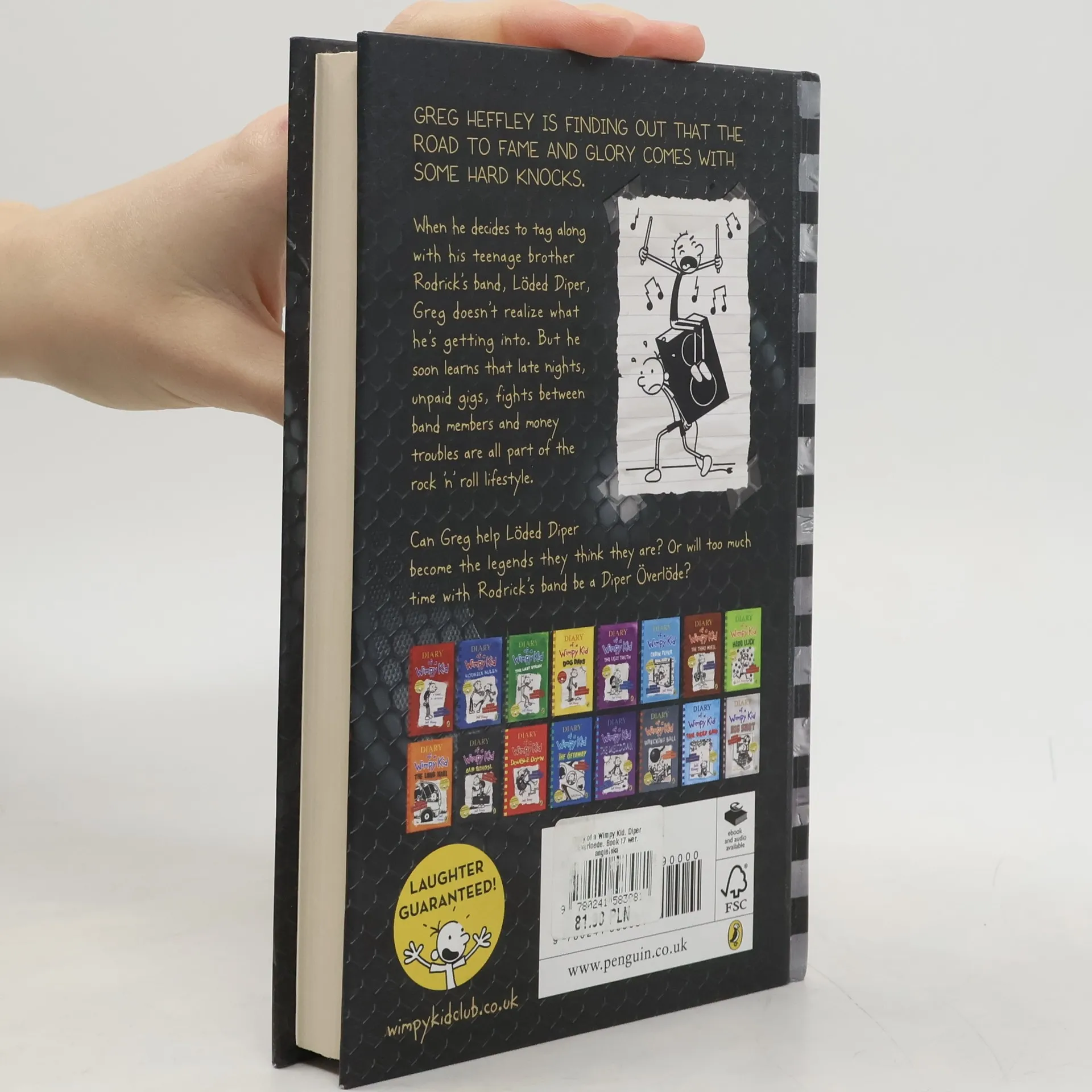 In Diper Överlöde, book 17 of the Diary of a Wimpy Kid series from #1 international bestselling author Jeff Kinney, Greg Heffley is finding out that the road to fame and glory comes with some hard knocks. When he decides to tag along with his brother Rodrick's band, Löded Diper, Greg doesn't realize what he's getting into. But he soon learns that late nights, unpaid gigs, fighting between band members, and money troubles are all part of the rock 'n' roll lifestyle. Can Greg help Löded Diper become the legends they think they are? Or will too much time with Rodrick's band be a diper överlöde?