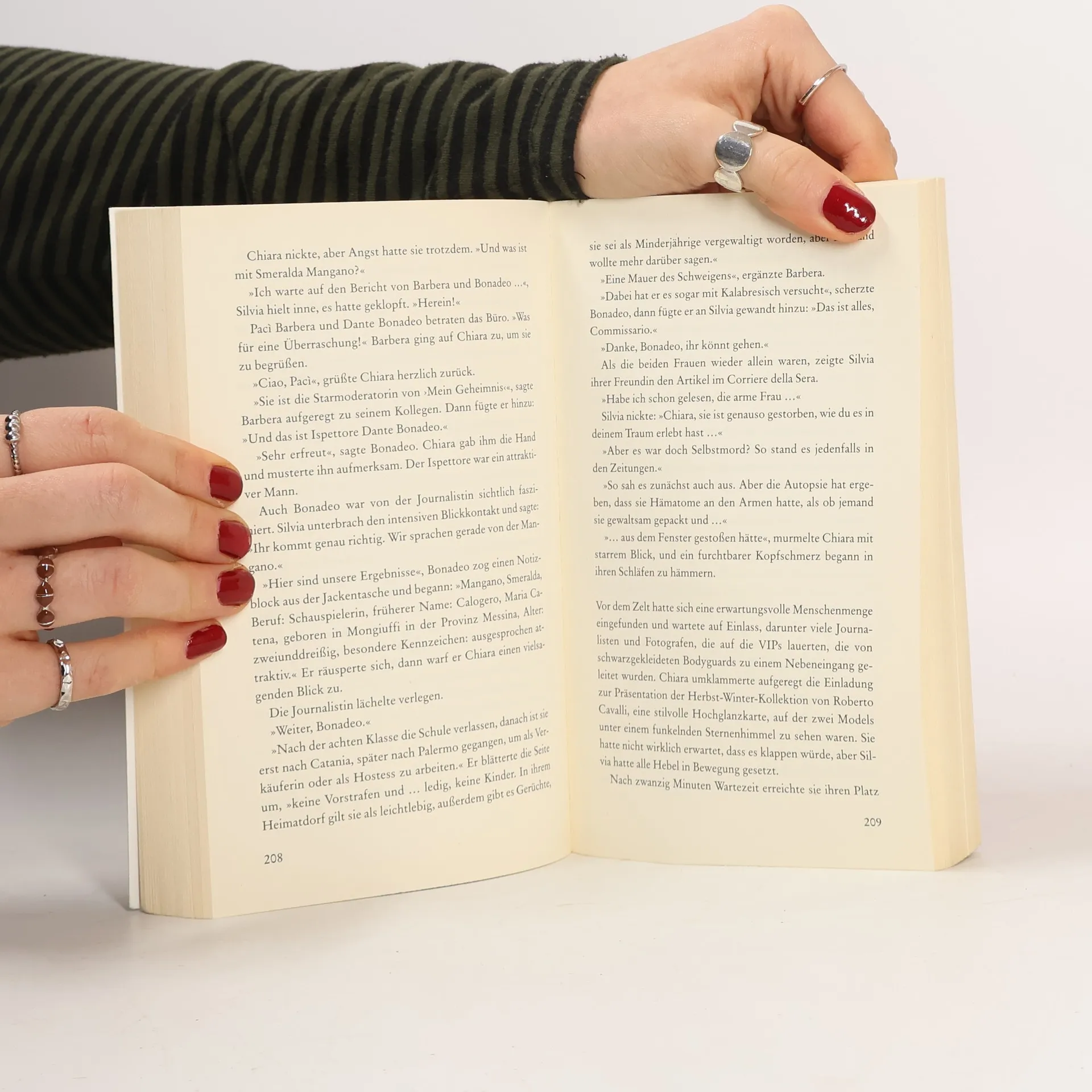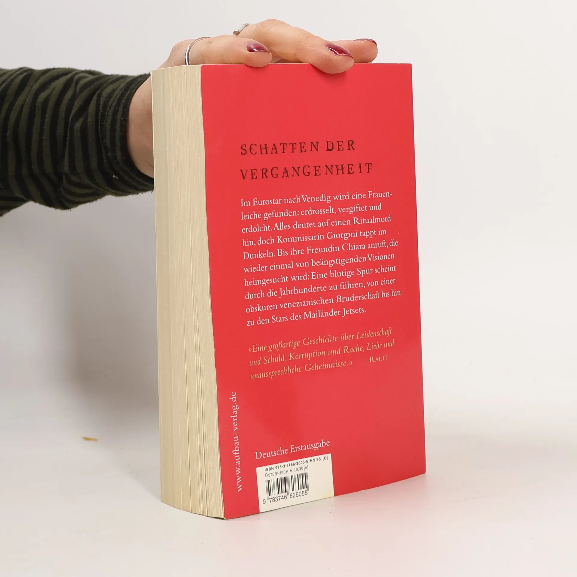 Schatten der Vergangenheit Im Eurostar nach Venedig wird eine Frauenleiche gefunden: erdrosselt, vergiftet und erdolcht. Alles deutet auf einen Ritualmord hin, doch Kommissarin Giorgini tappt im Dunkeln. Bis ihre Freundin Chiara anruft, die wieder einmal von beängstigenden Visionen heimgesucht wird: Eine blutige Spur scheint durch die Jahrhunderte zu führen, von einer obskuren venezianischen Bruderschaft bis hin zu den Stars des Mailänder Jetsets. „Eine großartige Geschichte über Leidenschaft und Schuld, Korruption und Rache, Liebe und unaussprechliche Geheimnisse.“ RALIT
