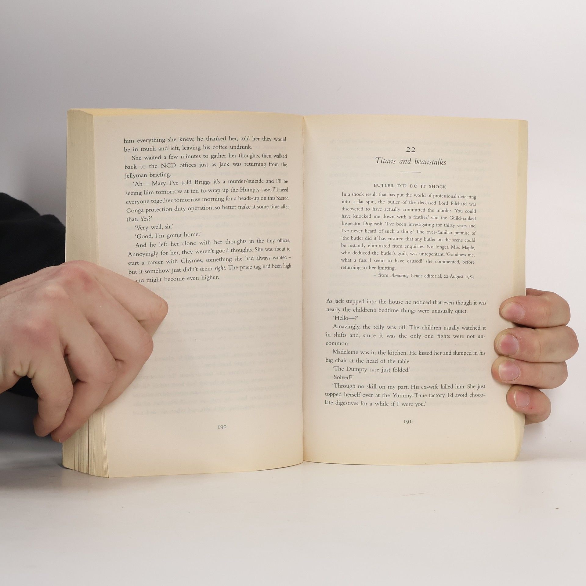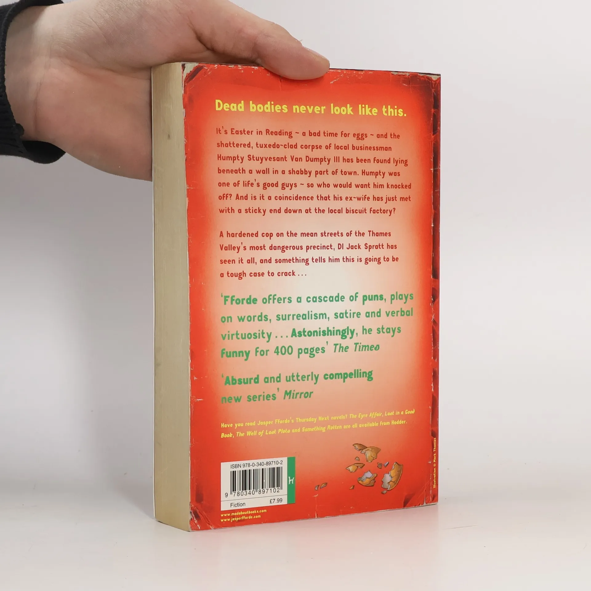 When D-class nursery celebrity Humpty Stuyvesant Van Dumpty III, is found shattered to death, all the evidence points to his ex-wife, who has conveniently shot herself. But Detective Inspector Jack Spratt and his assistant Mary Mary remain unconvinced.