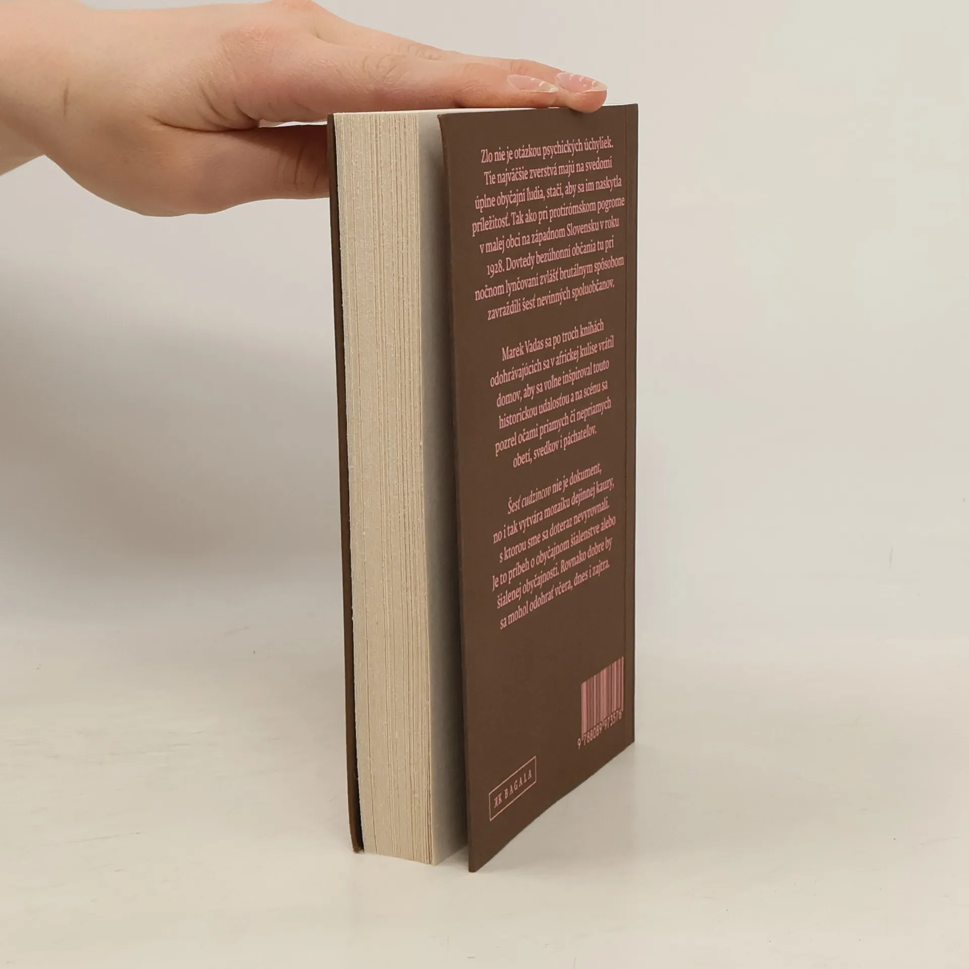 Zlo nie je otázkou psychických úchyliek. Tie najväčšie zverstvá majú na svedomí úplne obyčajní ľudia, stačí, aby sa im naskytla príležitosť. Tak ako pri protirómskom pogrome v malej obci na západnom Slovensku v roku 1928. Dovtedy bezúhonní občania tu pri nočnom lynčovaní zvlášť brutálnym spôsobom zavraždili šesť nevinných spoluobčanov. Marek Vadas sa po troch knihách odohrávajúcich sa v africkej kulise vrátil domov, aby sa voľne inšpiroval touto historickou udalosťou a na scénu sa pozrel očami priamych či nepriamych obetí, svedkov i páchateľov.