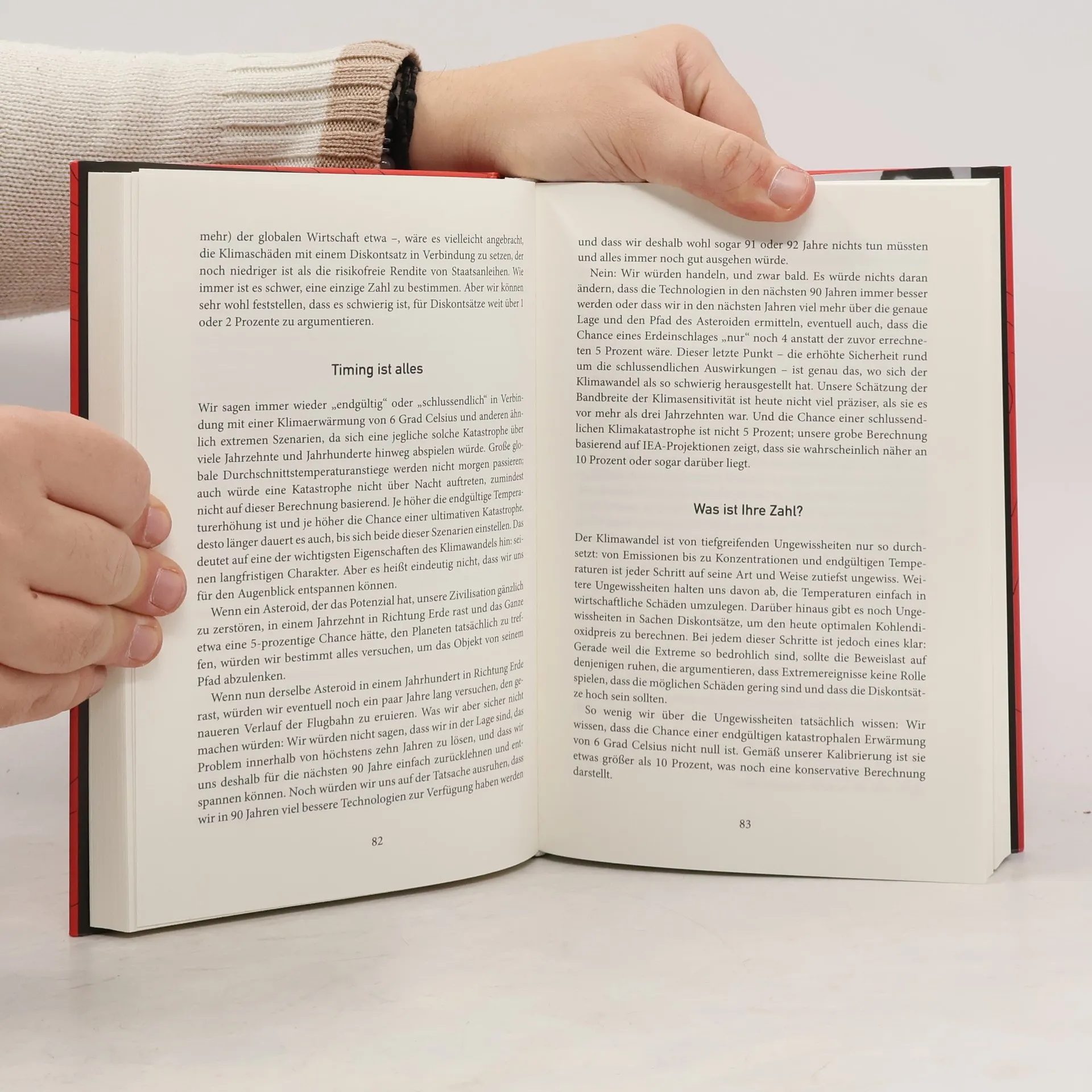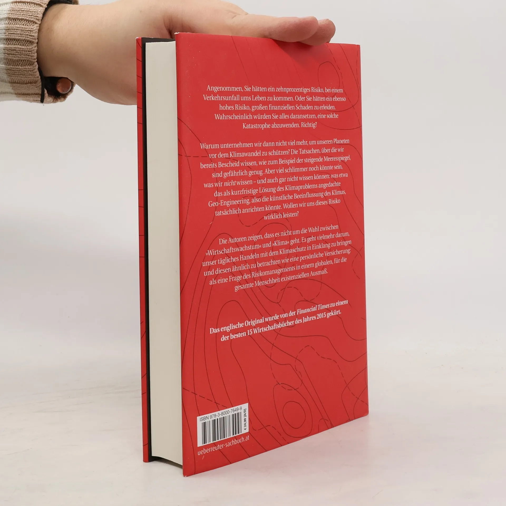 Angenommen, Sie hätten ein zehnprozentiges Risiko, bei einem Verkehrsunfall ums Leben zu kommen. Oder Sie hätten ein ebenso hohes Risiko, großen finanziellen Schaden zu erleiden. Wahrscheinlich würden Sie alles daransetzen, eine solche Katastrophe abzuwenden. Richtig? Warum unternehmen wir dann nicht viel mehr, um unseren Planeten vor dem Klimawandel zu schützen? Die Tatsachen, über die wir bereits Bescheid wissen, wie zum Beispiel der steigende Meeresspiegel, sind gefährlich genug. Aber viel schlimmer noch könnte sein, was wir nicht wissen – und auch gar nicht wissen können: was etwa das als kurzfristige Lösung des Klimaproblems angedachte Geo-Engineering, also die künstliche Beeinflussung des Klimas, tatsächlich anrichten könnte. Wollen wir uns dieses Risiko wirklich leisten? Die Autoren zeigen, dass es nicht um die Wahl zwischen „Wirtschaftswachstum“ und „Klima“ geht. Es geht vielmehr darum, unser tägliches Handeln mit dem Klimaschutz in Einklang zu bringen und diesen ähnlich zu betrachten wie eine persönliche Versicherung: als eine Frage des Risikomanagements in einem globalen, für die gesamte Menschheit existenziellen Ausmaß.