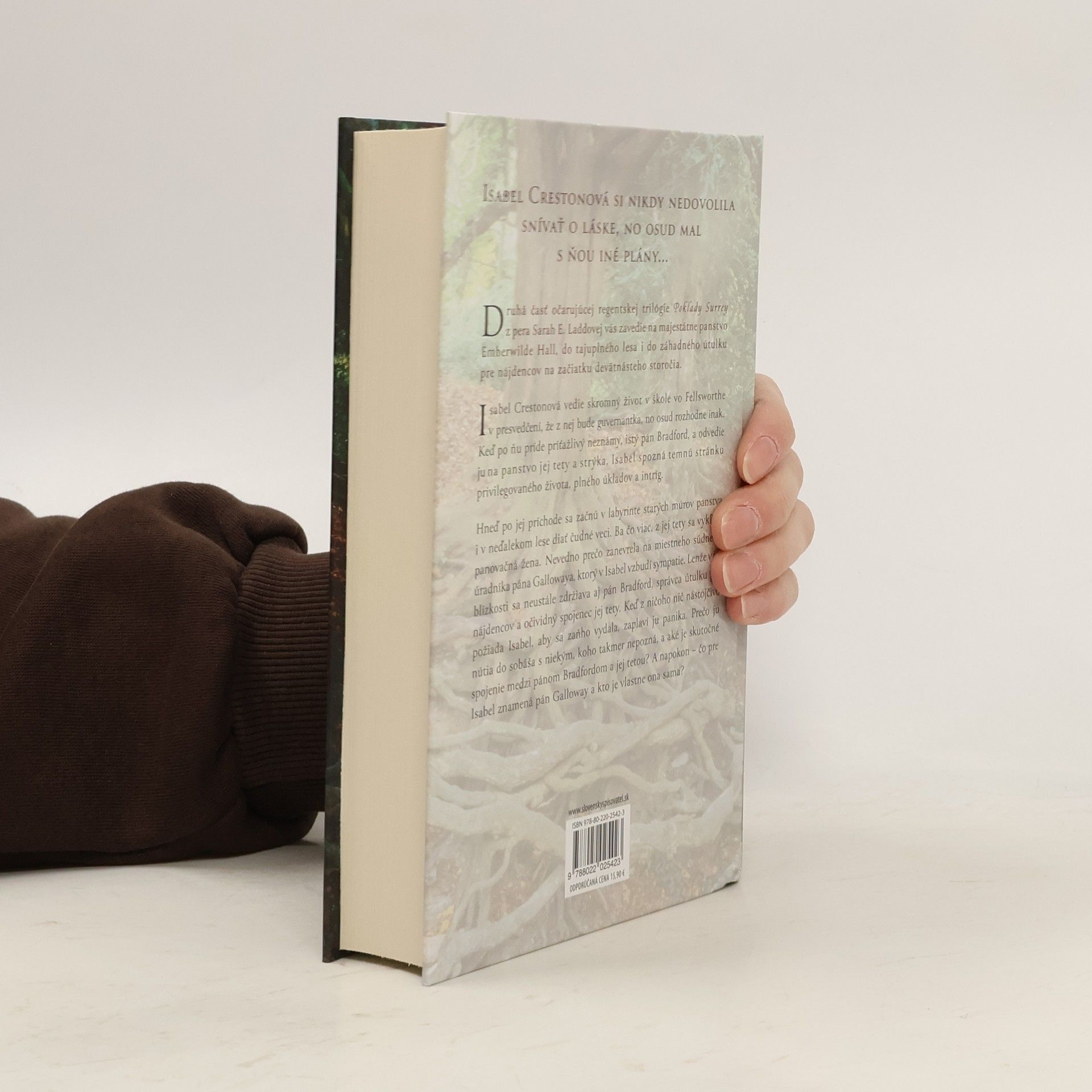 Isabel Crestonová si nikdy nedovolila snívať o láske, no osud mal s ňou iné plány...Druhá časť očarujúcej regentskej trilógie Poklady Surrey z pera Sarah E. Laddovej vás zavedie na majestátne panstvo Emberwilde Hall, do tajuplného lesa i do záhadného útulku pre nájdencov na začiatku devätnásteho storočia.Isabel Crestonová vedie skromný život v škole vo Fellsworthe v presvedčení, že z nej bude guvernantka, no osud rozhodne inak. Keď po ňu príde príťažlivý neznámy, istý pán Bradford, a odvedie ju na panstvo jej tety a strýka, Isabel spozná temnú stránku privilegovaného života, plného úkladov a intríg.Hneď po jej príchode sa začnú v labyrinte starých múrov panstva i v neďalekom lese diať čudné veci. Ba čo viac, z jej tety sa vykľuje panovačná žena. Nevedno prečo zanevrela na miestneho súdneho úradníka pána Gallowaya, ktorý v Isabel vzbudí sympatie. Lenže v jej blízkosti sa neustále zdržiava aj pán Bradford, správca útulku pre nájdencov a očividný spojenec jej tety. Keď z ničoho nič nástojčivo požiada Isabel, aby sa zaňho vydala, zaplaví ju panika. Prečo ju nútia do sobáša s niekým, koho takmer nepozná, a aké je skutočné spojenie medzi pánom Bradfordom a jej tetou? A napokon – čo pre Isabel znamená pán Galloway a kto je vlastne ona sama?