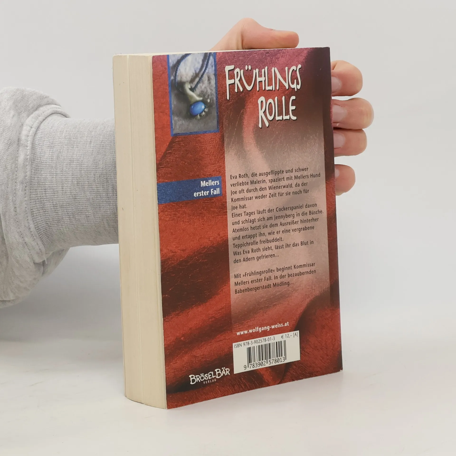 Eva Roth, die ausgeflippte und schwer verliebte Malerin, spaziert mit Mellers Hund Joe oft durch den Wienerwald, da der Kommissar weder Zeit für sie noch für Joe hat. Eines Tages läuft der Cockerspaniel davon und schlägt sich auf dem Jennyberg in die Büsche. Atemlos hetzt sie dem Ausreißer hinterher und ertappt ihn, wie er eine vergrabene Teppichrolle freibuddelt. Was Eva Roth sieht, lässt ihr das Blut in den Adern gefrieren. Mit 'Frühlingsrolle' beginnt Kommissar Mellers erster Fall. In der bezaubernden Babenbergerstadt Mödling.