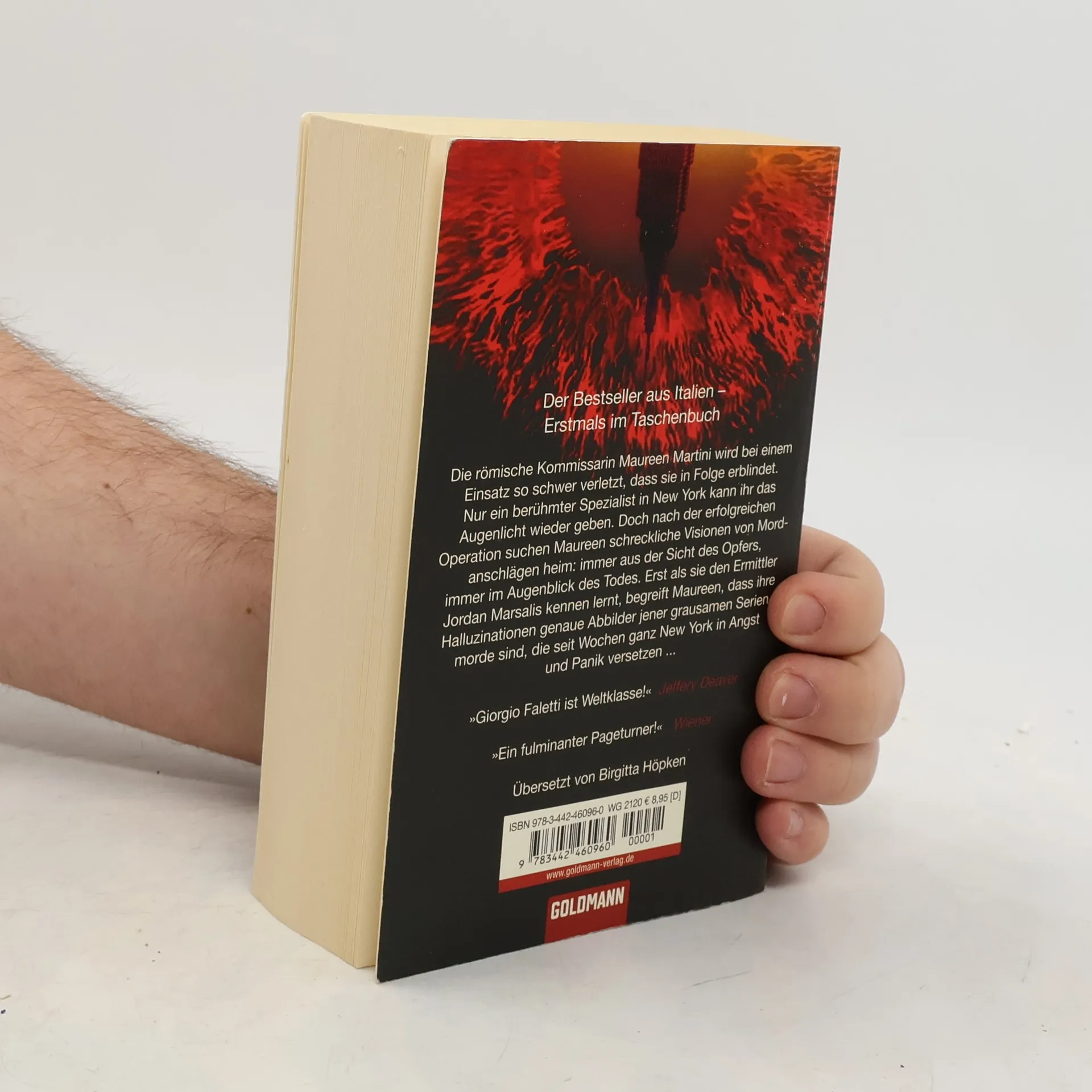 Dramatische Action, psychologische Finesse und ein ungleiches, aber kongeniales Ermittlerpaar Die römische Kommissarin Maureen Martini wird bei einem Einsatz so schwer verletzt, dass sie in Folge erblindet. Nur ein berühmter Spezialist in New York kann ihr das Augenlicht wiedergeben. Doch nach der erfolgreichen Operation suchen Maureen schreckliche Visionen von Mordanschlägen heim: immer aus der Sicht des Opfers, immer im Augenblick des Todes. Erst als sie den Ermittler Jordan Marsalis kennen lernt, begreift Maureen, dass ihre Halluzinationen genaue Abbilder jener grausamen Serienmorde sind, die seit Wochen ganz New York in Angst und Panik versetzen …