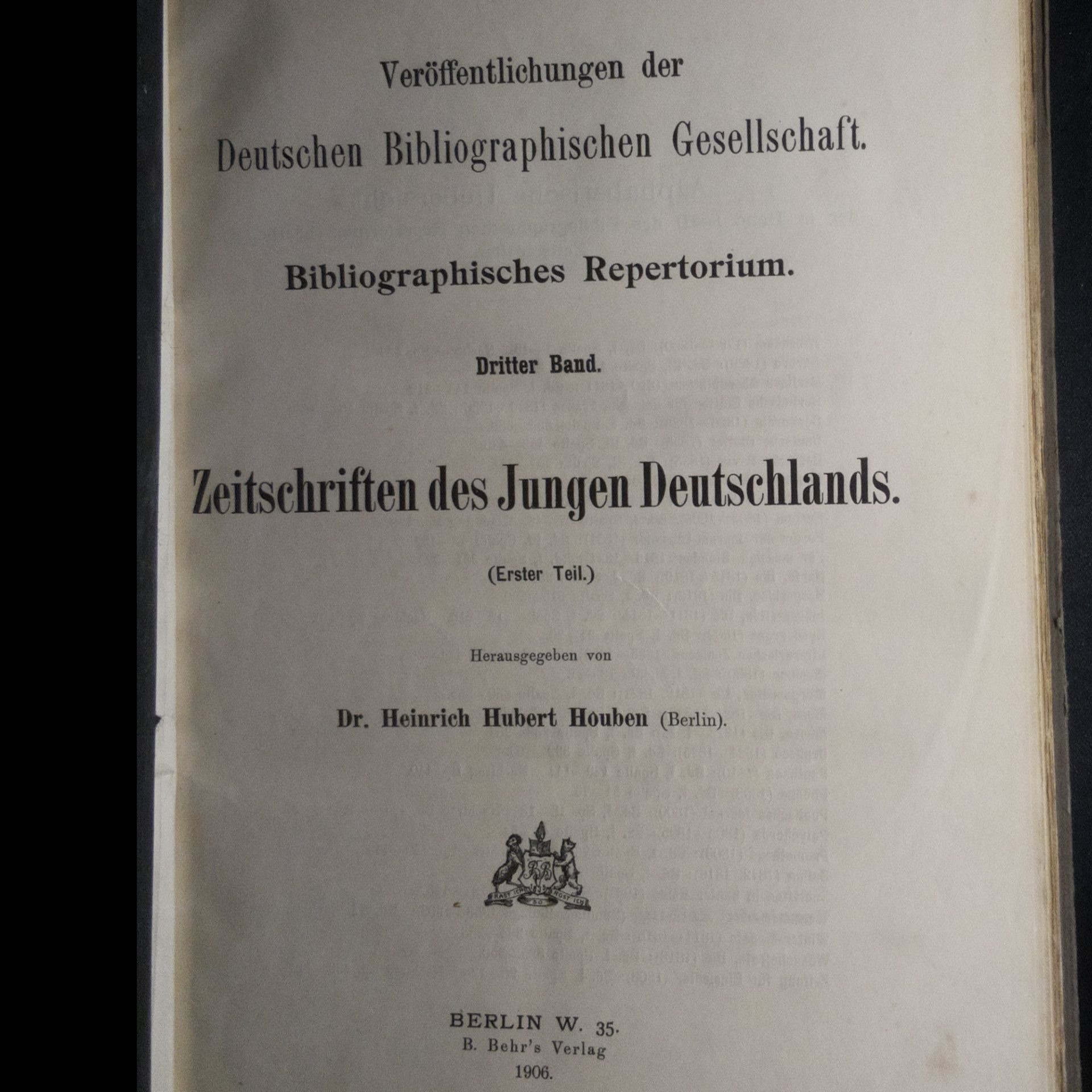 Zeitschriften des Jungen Deutschlands. (Erster Teil). Veröffentlichungen der Deutschen Bibliographischen Gesellschaft. Bibliographisches Repertorium. Dritter Band.