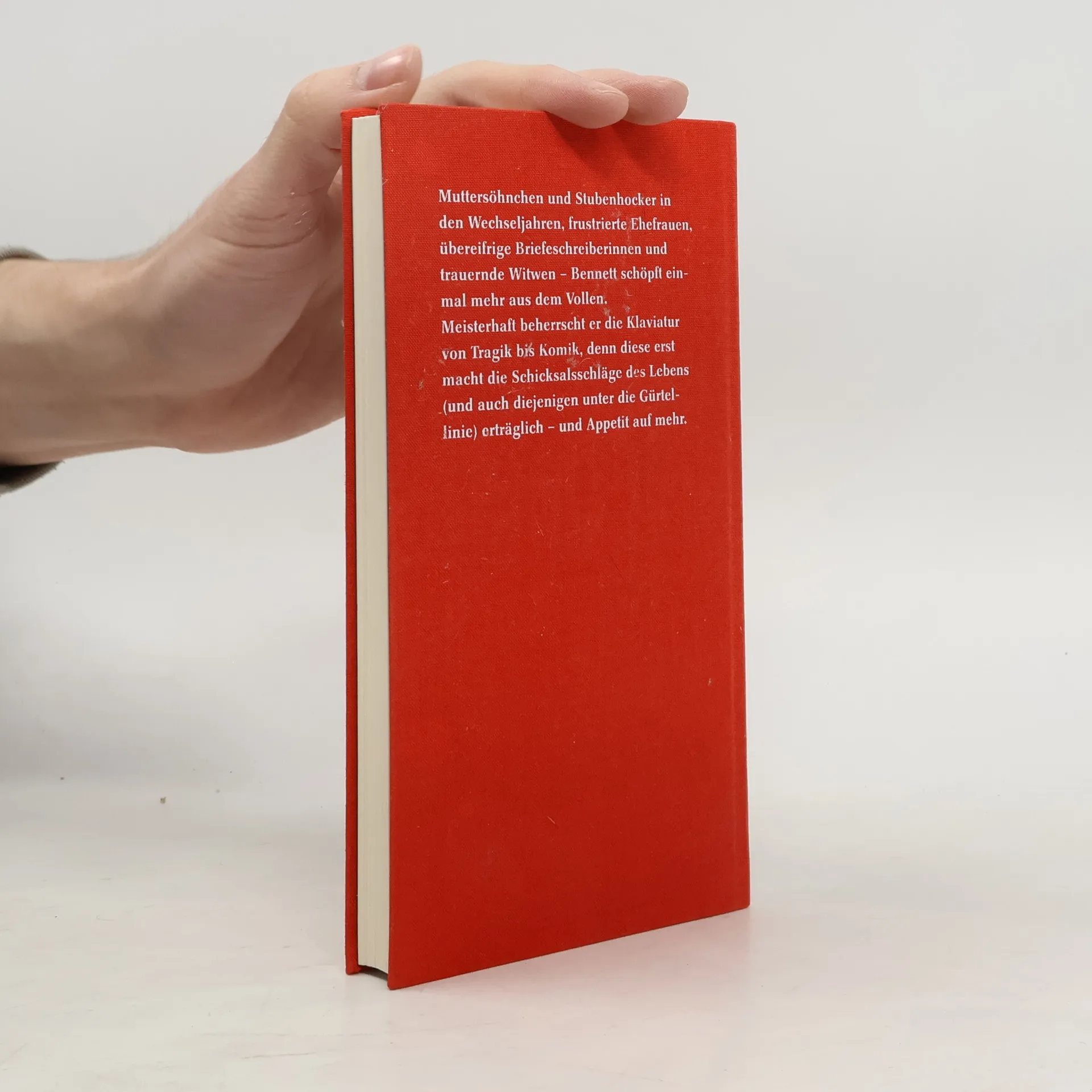 Sechs Menschen – sechs britisch- bizarre Schicksale: Da ist zunächst Graham, der – weit über vierzig – noch immer zu Hause bei seiner Mutter wohnt und gar nicht gut auf Mr. Turnbull zu sprechen ist, der Mama den Hof macht und ihr eine Hochzeitsreise auf die Kanarischen Inseln verspricht. Susan hingegen, Ehefrau des Vikars, schaut häufig mal zu tief ins Glas und verliebt sich in den indischen Gemüsehändler an der Ecke. Miss Ruddock zeigt uns, wie extensives Briefeschreiben dazu führen kann, dass man im Gefängnis landet, während die naive Mittdreißigerin Lesley von einem deutschen Filmproduzenten übers Ohr gehauen wird und die Hüllen fallen lässt. Muriel schließlich hat bis heute den Tod ihres Ehemanns nicht verwunden – ebenso wenig wie die hochbetagte Doris, die einen Kleinkrieg gegen ihre Putzfrau und Altenpflegerin führt und der ein Kräcker unterm Kanapee zum Verhängnis wird … Meisterhaft beherrscht Alan Bennett die Klaviatur von Tragik bis Komik, denn diese erst macht die Schicksalsschläge des Lebens (und auch diejenigen unter die Gürtellinie) erträglich – und Appetit auf mehr.