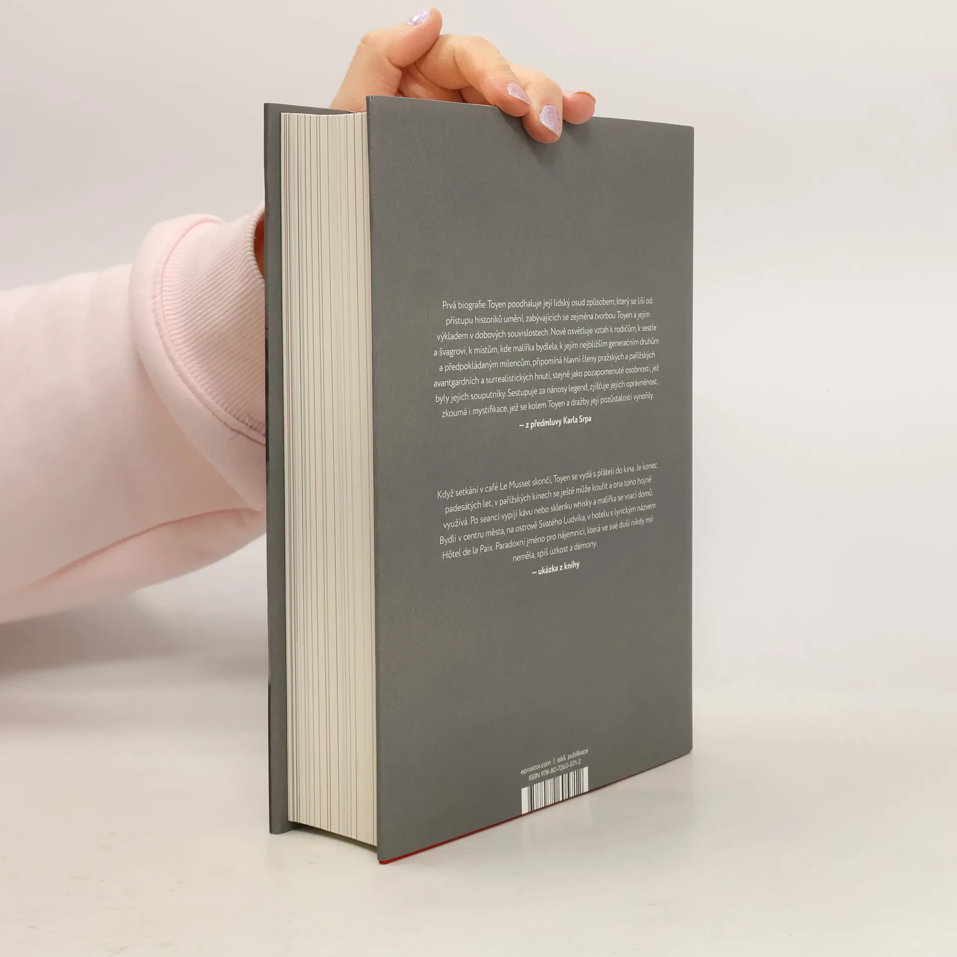 Toyen je dodnes jednou z nejznámějších a nejuznávanějších avantgardních umělkyň na světě. Biografie této svobodomyslné malířky a výrazné osobnosti meziválečné umělecké avantgardy, která sama o sobě šířila mnoho mýtů, odkrývá dosud neznámá fakta a zachycuje historii mnoha obrazů. Spisovatelka a filmová režisérka Andrea Sedláčková prošla desítky archivů, policejních záznamů a dosud nepublikovaných deníků, aby objevila skutečnou Toyen. Strhujícím způsobem líčí její milostný život a dění mezi českými a francouzskými surrealisty a levicovými intelektuály. Dopřává nám setkání s Vítězslavem Nezvalem, Karlem Teigem, Jindřichem Heislerem, André Bretonem, Benjaminem Péretem, Paulem Eluardem a samozřejmě s Jindřichem Štyrským. Půvabně líčí pražské a pařížské galerie, kavárny, kabarety a nevěstince i atmosféru míst, kde malířka a její souputníci pobývali a tvořili. Současně nás seznamuje s historií mnoha Toyeniných obrazů. Text doprovází přes dvě stě reprodukcí a dokumentárních černobílých i barevných fotografií.