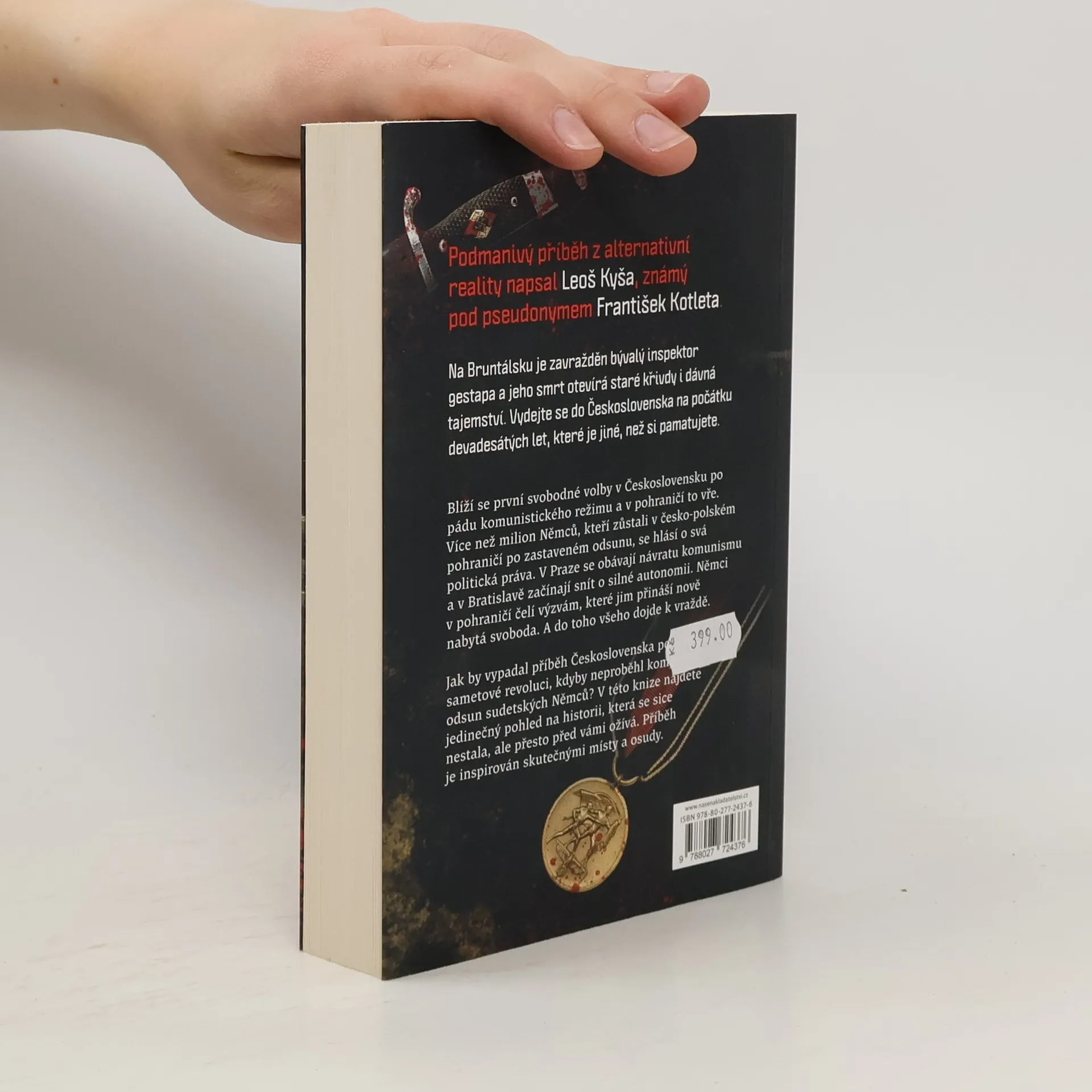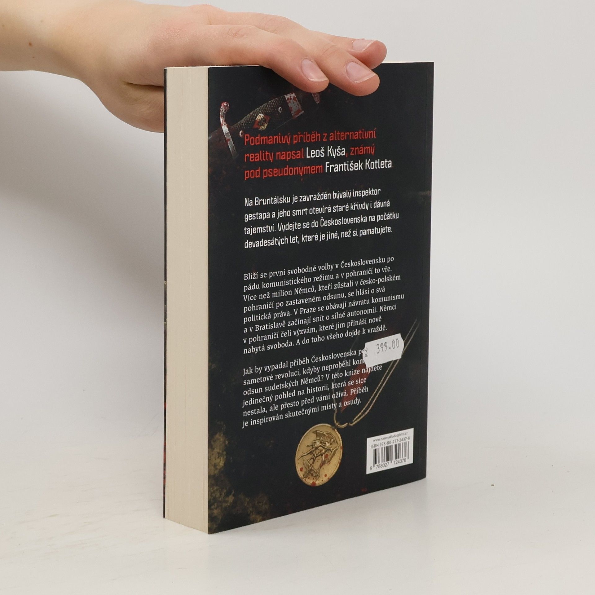 Na Bruntálsku je zavražděn bývalý inspektor Gestapa a jeho smrt otevírá staré křivdy a dávná tajemství. Podmanivý příběh z alternativní reality napsal Leoš Kyša, známý pod pseudonymem František Kotleta. Vydejte se do Československa na počátku devadesátých let, které je jiné, než si pamatujete.Blíží se první svobodné volby v Československu po pádu komunistického režimu a v pohraničí to vře. Více než milion Němců, kteří zůstali v česko-polském pohraničí po zastaveném odsunu, se hlásí o svá politická práva. V Praze se obávají návratu komunismu a v Bratislavě začínají snít o silné autonomii. A nezapomeňte, že dojde k vraždě...Jak by vypadal příběh Československa po Sametové revoluci, kdyby neproběhl kompletní odsun sudetských Němců? V této knize najdete jedinečný pohled na historii, která se sice nestala, ale přesto před vámi ožívá. Příběh je inspirován skutečnými místy a osudy.