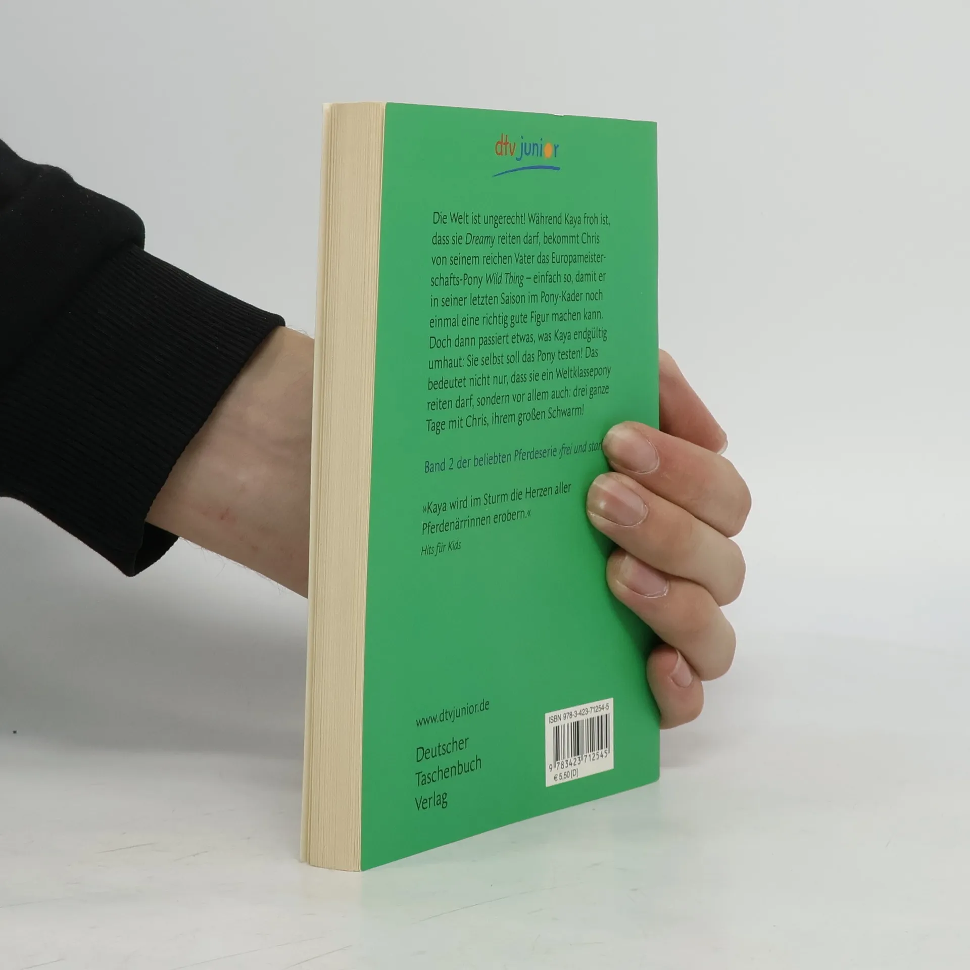Mein Gott, die Welt ist ungerecht! Während Kaya froh ist, dass sie Dreamy reiten darf, überrascht sie dessen Besitzer, Herr Waldmann, mit einer wirklich fulminanten Nachricht: Er hat beschlossen, für seinen Sohn ein Pony zu kaufen – ein richtiger Kracher soll es sein, damit der 15-jährige Chris in seinem letzten Jahr im Ponykader noch einmal so richtig groß rauskommt. Das sagt sich leicht, wenn man so reich ist wie Familie Waldmann! Doch dann passiert etwas, das Kaya endgültig umhaut: Sie selbst soll mitfahren und das Pony Wild Thing begutachten – das bedeutet nicht nur den Ritt auf einem Weltklassepony, sondern vor allem drei Tage mit Chris, ihrem großen Schwarm!