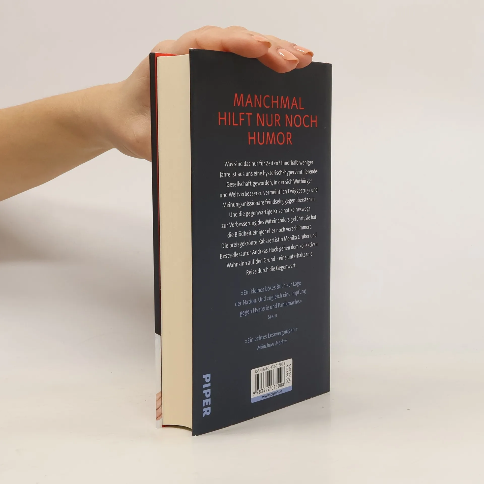 Was sind das nur für Zeiten? Innerhalb weniger Jahre ist aus uns eine hysterisch-hyperventilierende Gesellschaft geworden, in der sich Wutbürger und Weltverbesserer, vermeintlich Ewiggestrige und Meinungsmissionare feindselig gegenüberstehen. Und die gegenwärtige Krise hat keineswegs zur Verbesserung des Miteinanders geführt, sie hat die Blödheit einiger eher noch verschlimmert. Die preisgekrönte Kabarettistin Monika Gruber und Bestsellerautor Andreas Hock gehen dem kollektiven Wahnsinn auf den Grund – und stellen fest, dass er seine Ursache vor allem in der Ignoranz und im Egoismus einiger Weniger hat. Mit Selbstironie und schwarzem Humor begeben sie sich auf die Suche nach dem gesunden Menschenverstand und gehen dorthin, wo es wirklich wehtut – eine unterhaltsame Reise durch die Gegenwart, die beweist: Lachen hilft!