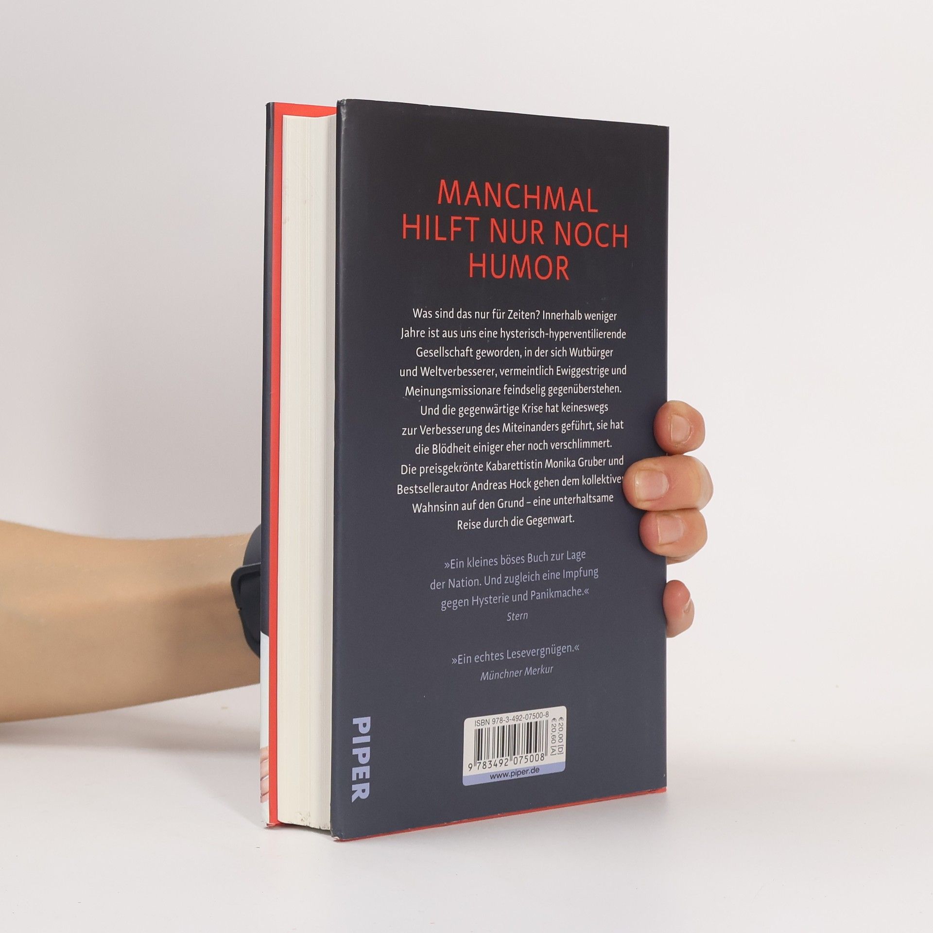 Was sind das nur für Zeiten? Innerhalb weniger Jahre ist aus uns eine hysterisch-hyperventilierende Gesellschaft geworden, in der sich Wutbürger und Weltverbesserer, vermeintlich Ewiggestrige und Meinungsmissionare feindselig gegenüberstehen. Und die gegenwärtige Krise hat keineswegs zur Verbesserung des Miteinanders geführt, sie hat die Blödheit einiger eher noch verschlimmert. Die preisgekrönte Kabarettistin Monika Gruber und Bestsellerautor Andreas Hock gehen dem kollektiven Wahnsinn auf den Grund – und stellen fest, dass er seine Ursache vor allem in der Ignoranz und im Egoismus einiger Weniger hat. Mit Selbstironie und schwarzem Humor begeben sie sich auf die Suche nach dem gesunden Menschenverstand und gehen dorthin, wo es wirklich wehtut – eine unterhaltsame Reise durch die Gegenwart, die beweist: Lachen hilft!
