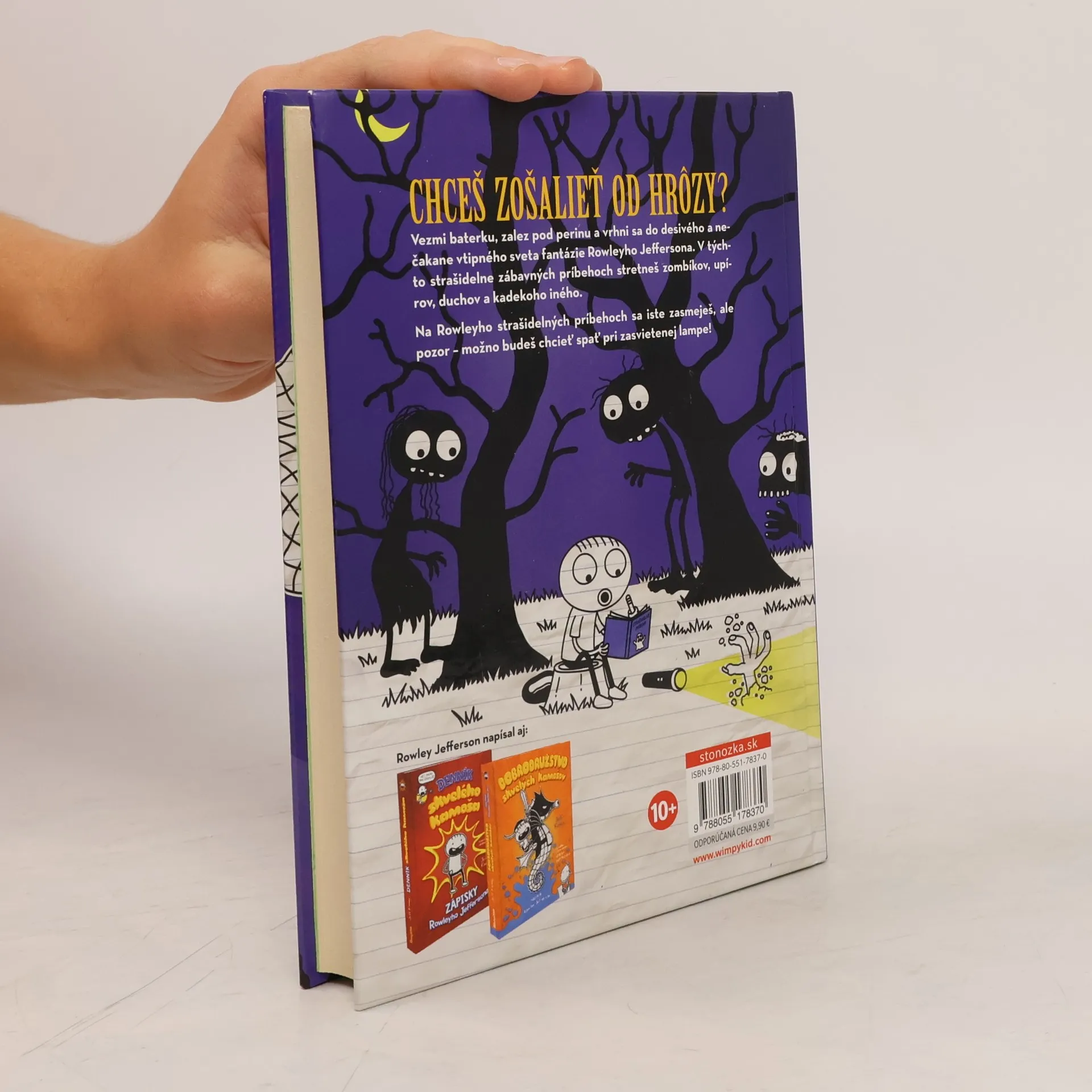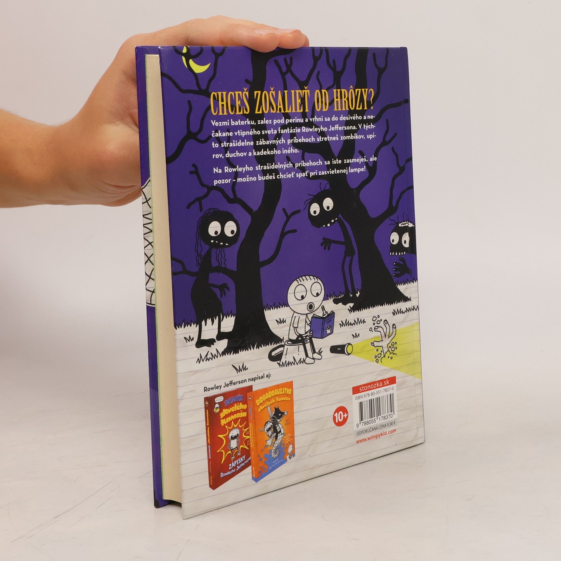 Chceš zošalieť od hrôzy? Začítaj sa do strašidelných príbehov z pera najlepšieho kamoša odvážneho bojka!Vezmi baterku, zalez pod perinu a vrhni sa do desivého a nečakane vtipného sveta z fantázie Rowleyho Jeffersona. V týchto strašidelne zábavných príbehoch stretneš zombíkov, upírov, duchov a kadekoho iného. Na Rowleyho strašidelných príbehoch sa iste zasmeješ, ale pozor – možno budeš chcieť spať pri zasvietenej lampe!