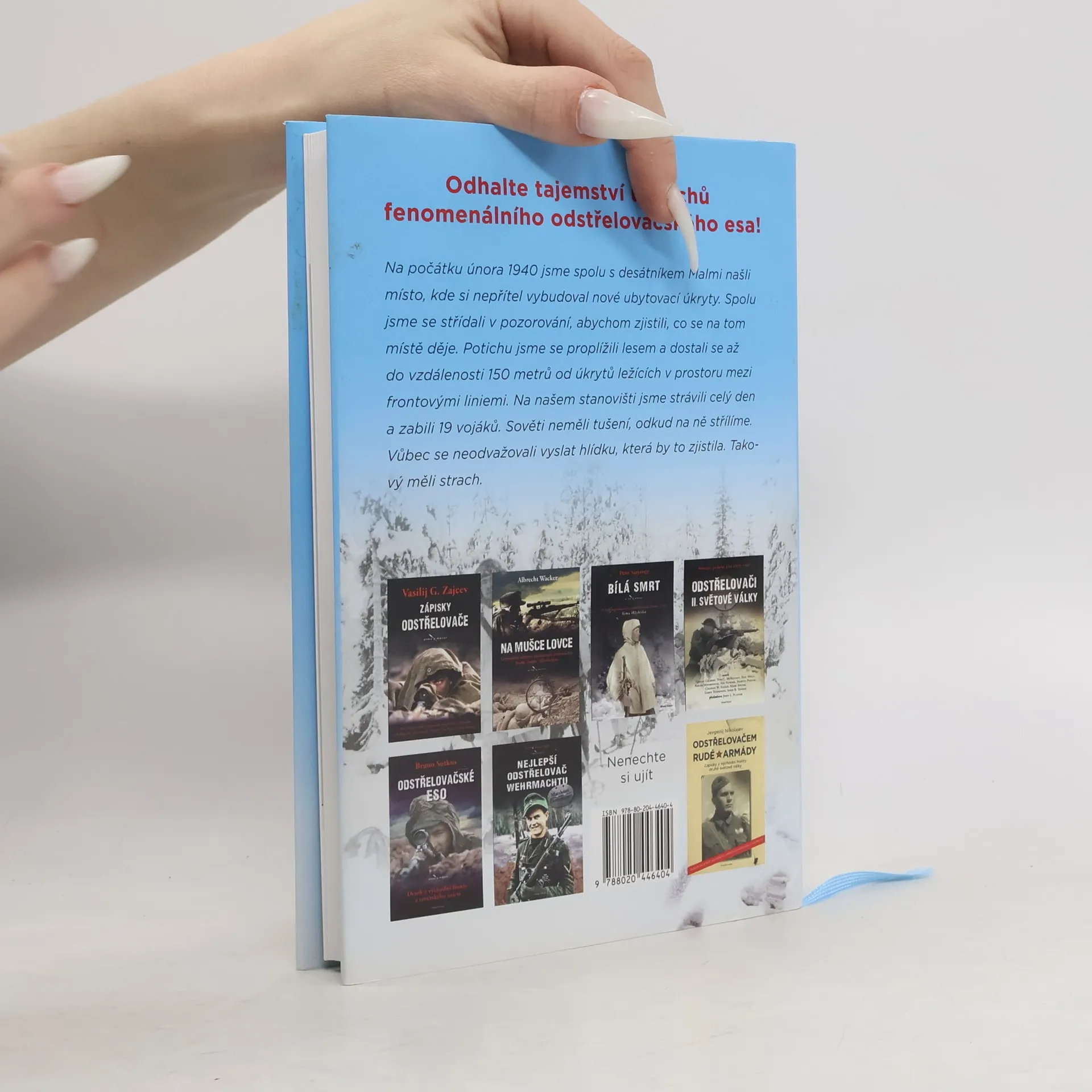 SIMO HÄYHÄ (1905–2002) je nejslavnější odstřelovač všech dob. V průběhu Zimní války mezi Sovětským svazem a Finskem v letech 1939–1940 dosáhl 542 potvrzených zásahů, což je dodnes nepřekonaný rekord. Jeho výkon je o to pozoruhodnější, že ho docílil s běžnou puškou opatřenou mechanickými mířidly. Stal se vzorem pro mnoho dalších odstřelovačů po celém světě a nezpochybnitelně předvedl, jak zásadní roli může hrát elitní specializovaný střelec na moderním bojišti. TAPIO A. M. SAARELAINEN slouží ve finské armádě jako důstojník z povolání. Dlouhodobě se věnuje výcviku odstřelovačů, podílel se na přípravě finské armádní příručky pro odstřelovače a sám je skvělý střelec. Díky tomu se stal jedinou osobou, které se samotářský a skromný Simo Häyhä odhodlal plně otevřít. Výsledkem je fascinující, bohatě ilustrovaná kniha, která přináší mnoho nových podrobností o životním příběhu odstřelovačské legendy, ale především podrobně zkoumá tajemství Häyhäho úspěchů a popisuje také využívání jeho zkušeností v současné finské armádě. Tuto publikaci proto ocení nejen zájemci o dějiny válek a odstřelovačství, ale také vojenští a policejní odstřelovači či závodní střelci.