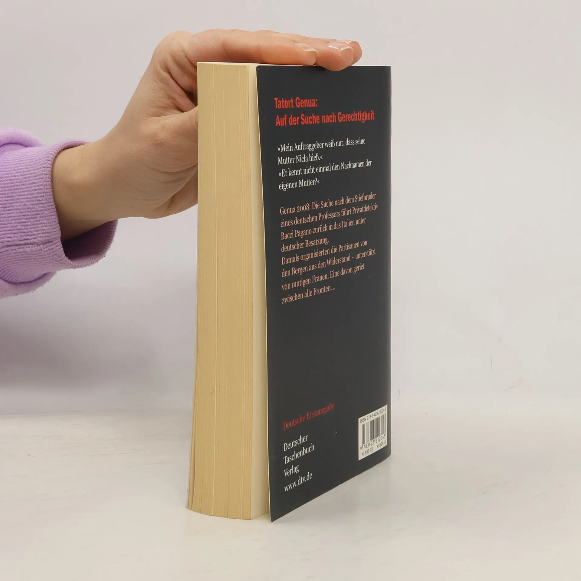 Tatort Genua: Auf der Suche nach Gerechtigkeit Genua, 1944. Die 19-jährige Tilde, Kurierin der Partisanen, wird nachts von einer Patrouille der Wehrmacht geschnappt. Sie hat Glück: Beim Verhör in der Kommandantur gefällt sie dem Besatzungsoffizier so sehr, dass er sie laufen lässt. Das bringt die Partisanen auf eine Idee: Die junge Fabrikarbeiterin soll dem Witwer entlocken, wer den Deutschen ihre Pläne verrät ... Rund 65 Jahre später soll der Genueser Privatdetektiv Bacci Pagano den italienischen Stiefbruder eines deutschen Professors suchen. Viele Informationen kann Kurt Hessen Pagano nicht bieten: Er weiß nur, dass seine Mutter Nicla hieß und sein Vater, ein Wehrmachtsoffizier, bei einem Partisanenanschlag auf ein deutsches Soldatenkino ums Leben kam. Dann findet Pagano jedoch heraus, dass der Deutsche zwanzig Jahre zuvor in Genua schon einmal dieselben Fragen gestellt hat.