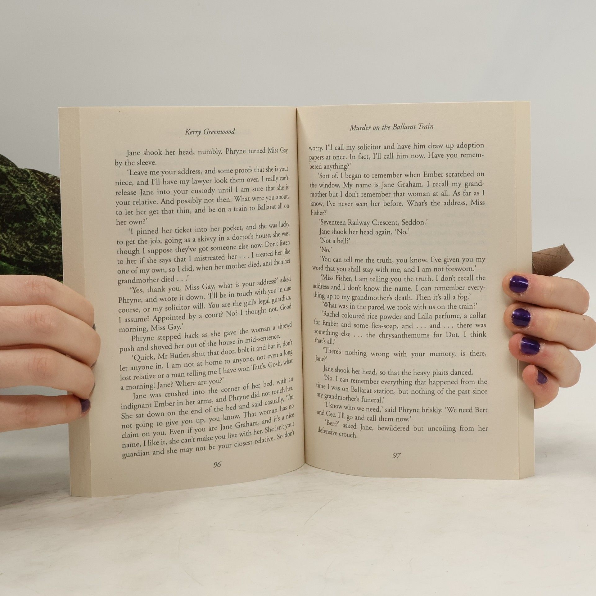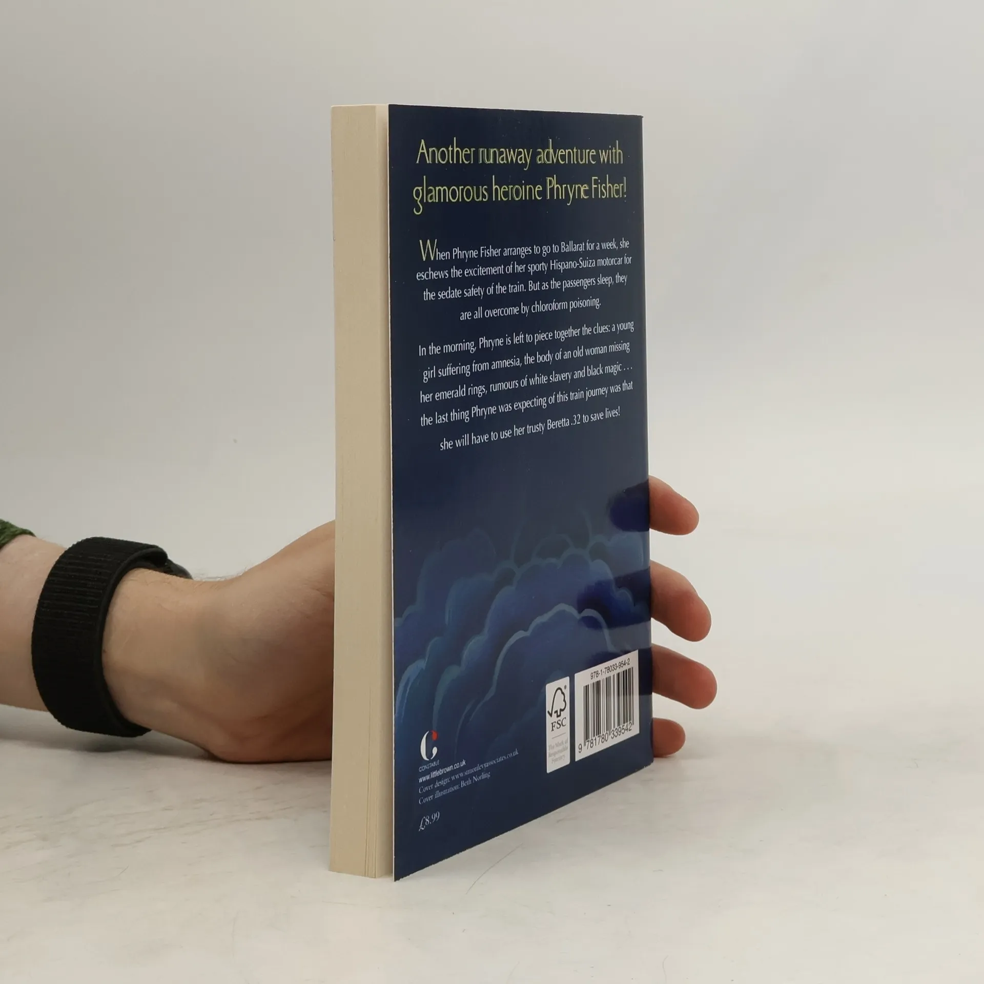 Another runaway adventure with glamorous heroine Phryne Fisher!When Phryne Fisher arranges to go to Ballarat for a week, she eschews the excitement of her Hispano-Suiza for the sedate safety of the train. But as the passengers sleep, they are all overcome by chloroform poisoning.In the morning Phryne is left to piece together all the clues: a young girl suffering from amnesia, the body of an old woman missing her emerald rings and rumours of white slavery and black magic... the last thing Phryne was expecting of this train journey was that she will have to use her trusty Beretta .32 to save lives!