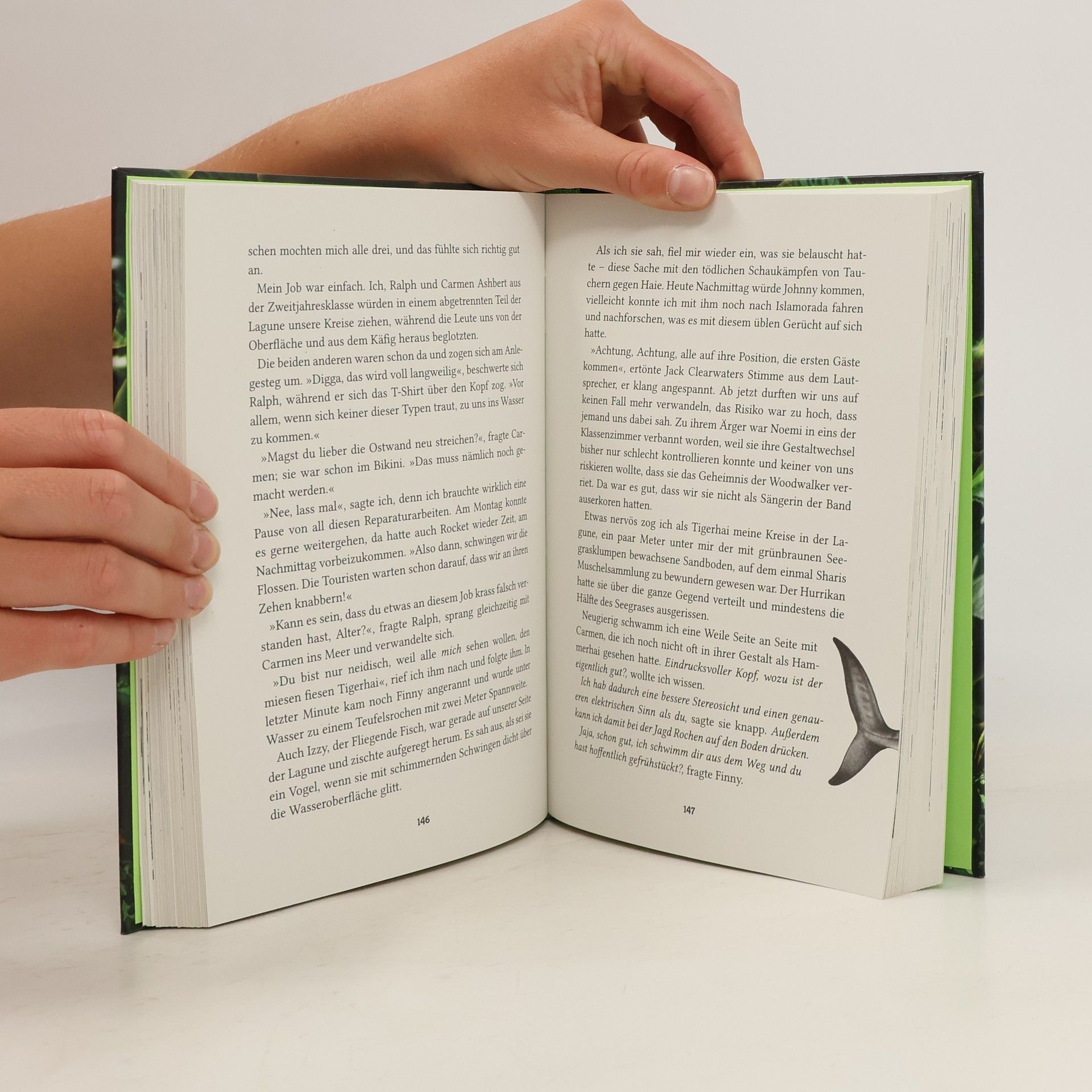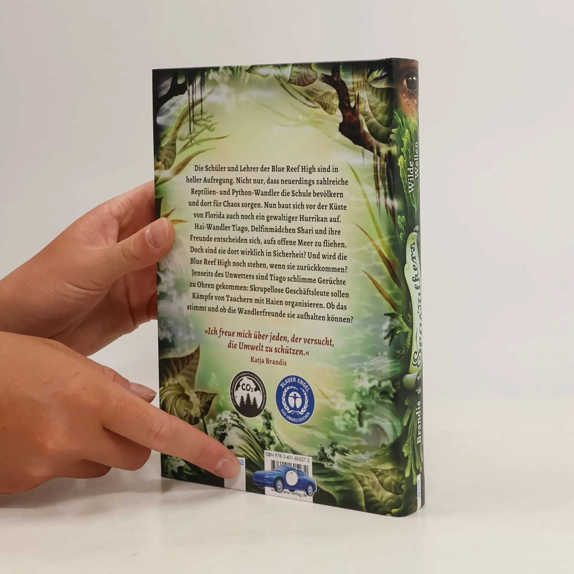 Die Schüler und Lehrer der Blue Reef High sind in Aufregung, da zahlreiche Reptilien- und Python-Wandler für Chaos sorgen. Gleichzeitig baut sich vor der Küste Floridas ein gewaltiger Hurrikan auf. Haiwandler Tiago, Delfinmädchen Shari und ihre Freunde fliehen aufs offene Meer, doch sind sie dort wirklich in Sicherheit? Zudem kursieren Gerüchte über skrupellose Geschäftsleute, die Kämpfe zwischen Tauchern und Haien organisieren. Können die Wandlerfreunde diese Machenschaften aufhalten? In der faszinierenden Unter- und Überwasserwelt der Everglades erleben Tiago und seine Gestaltwandler-Freunde – darunter Delfinwandlerin Shari, Gürteltierwandler Jasper und Rochenwandlerin Finny – spannende Abenteuer. Auch beliebte Figuren aus der Woodwalkers-Serie, wie Carag und Tikaani, haben Gastauftritte. Die Reihe richtet sich an Jungen und Mädchen ab 10 Jahren und bietet packenden Lesestoff, ergänzt durch wunderschöne Illustrationen von Claudia Carls. Alle Bände sind unabhängig von der Woodwalkers-Serie lesbar und erscheinen halbjährlich auf umweltfreundlichem Papier, zertifiziert mit dem „Blauen Engel“.