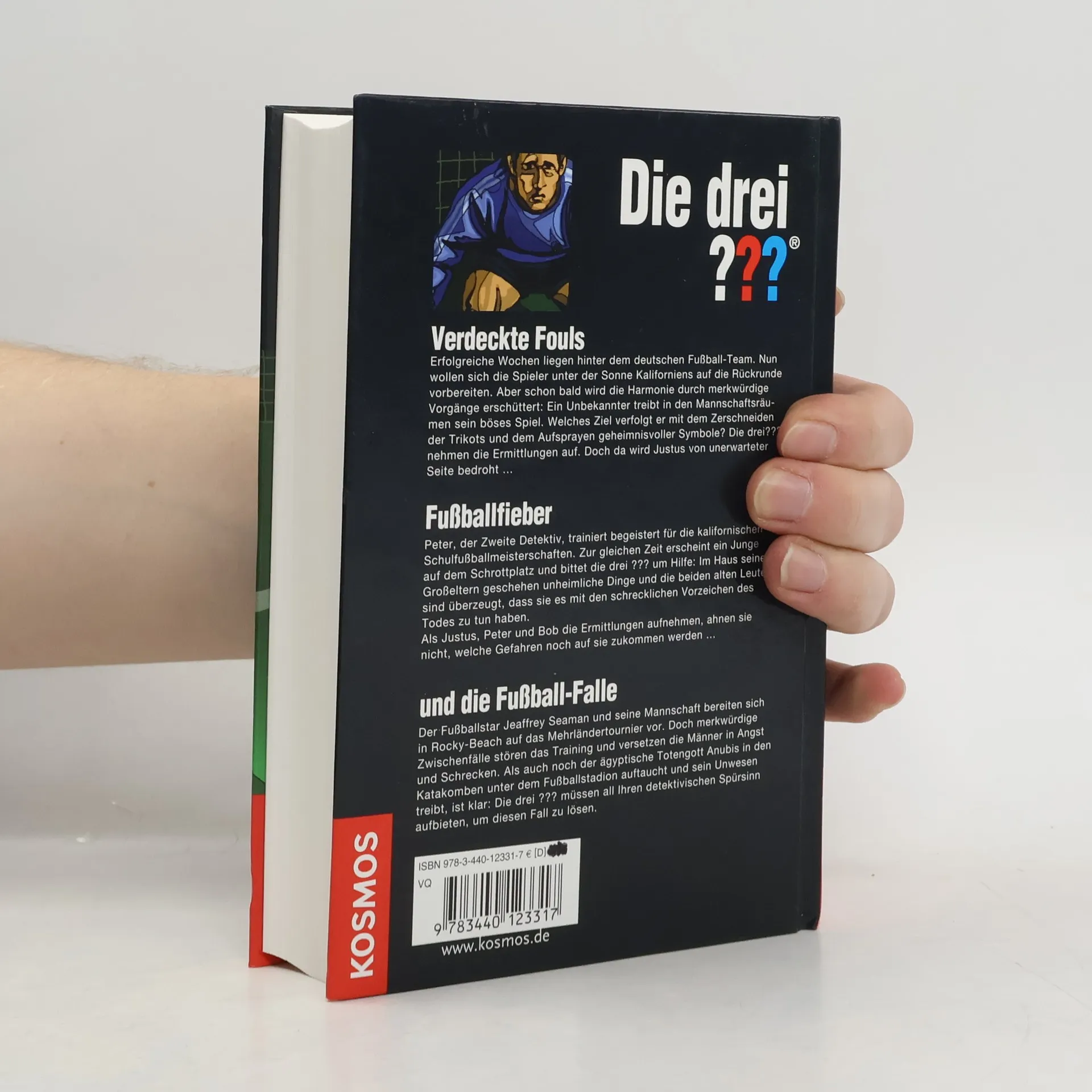 Drei spannende Fußball-Abenteuer in einem Band! Erfolgreiche Wochen liegen hinter dem deutschen Fußball-Team, das sich nun in Kalifornien auf die Rückrunde vorbereitet. Doch die Harmonie wird durch merkwürdige Vorgänge gestört: Ein Unbekannter treibt sein böses Spiel in den Mannschaftsräumen, schneidet Trikots und sprüht geheimnisvolle Symbole. Die drei ??? nehmen die Ermittlungen auf, doch Justus wird unerwartet bedroht. Währenddessen trainiert Peter, der Zweite Detektiv, begeistert für die kalifornischen Schulfußballmeisterschaften. Ein Junge erscheint auf dem Schrottplatz und bittet um Hilfe, da im Haus seiner Großeltern unheimliche Dinge geschehen. Die beiden alten Leute glauben, es mit schrecklichen Vorzeichen des Todes zu tun zu haben. Justus, Peter und Bob ahnen nicht, welche Gefahren auf sie warten, als sie die Ermittlungen aufnehmen. In Rocky Beach bereitet sich der Fußballstar Jeaffrey Seaman mit seiner Mannschaft auf ein Mehrländertournier vor. Doch merkwürdige Zwischenfälle stören das Training und versetzen die Spieler in Angst. Als der ägyptische Totengott Anubis in den Katakomben unter dem Fußballstadion auftaucht, wird klar, dass die drei ??? all ihren detektivischen Spürsinn aufbieten müssen, um diesen Fall zu lösen!