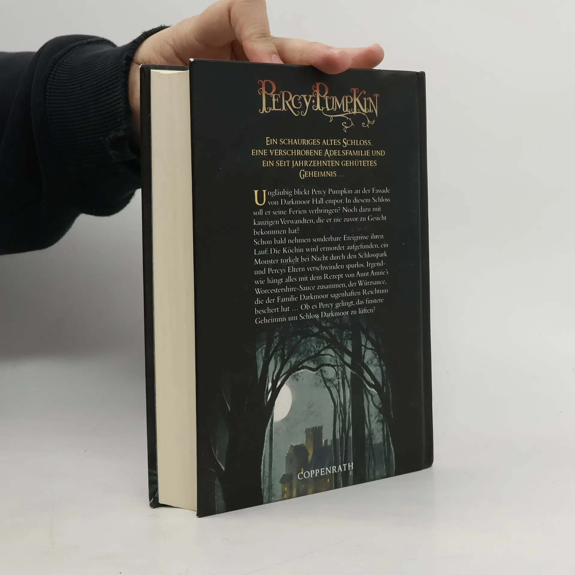 Ungläubig blickt Percy Pumpkin an der Fassade von Darkmoor Hall empor. In diesem Schloss soll er seine Ferien verbringen? Noch dazu mit kauzigen Verwandten, die er nie zuvor zu Gesicht bekommen hat? Schon bald nehmen sonderbare Ereignisse ihren Lauf: Die Köchin wird ermordet aufgefunden, ein Monster torkelt bei Mondlicht durch den Schlosspark und Percys Eltern verschwinden spurlos. Irgendwie scheint alles mit dem Rezept von Aunt Annie's Worcestershire-Sauce zu tun zu haben. Der Würzsauce, die der Familie Darkmoor sagenhaften Reichtum beschert hat und deren Zutaten seit Jahrzehnten streng geheim gehalten werden. Wird es Percy gelingen, das Rätsel um Schloss Darkmoor zu lüften? Ein Buch voller schräger Figuren und fantasievoller Handlungsräume als Auftakt einer großartigen Trilogie.