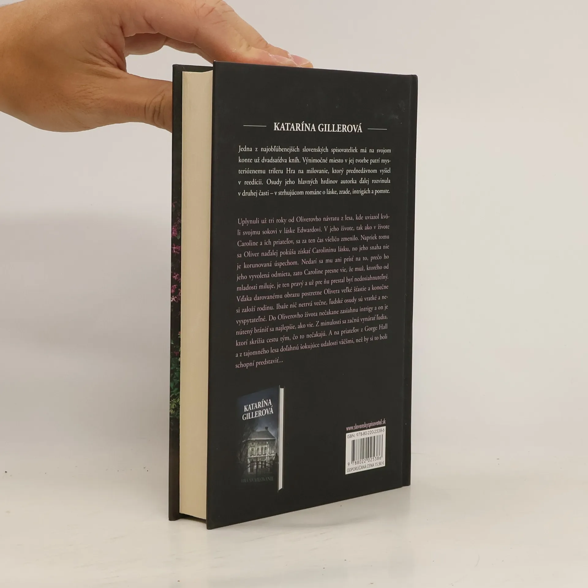 Katarína Gillerová, jedna z najobľúbenejších slovenských spisovateliek, má na svojom konte už dvadsaťjeden kníh. Výnimočné miesto v jej tvorbe patrí mysterióznemu trileru Hra na milovanie, ktorý prednedávnom vyšiel v reedícii. Osudy jeho hlavných hrdinov autorka ďalej rozvinula v pokračovaní s názvom Hra na milovanie 2, strhujúcom románe o láske, zrade, intrigách a pomste.Uplynuli už tri roky od Oliverovho návratu z lesa, kde uviazol kvôli svojmu sokovi v láske Edwardovi. V jeho živote, tak ako v živote Caroline a ich priateľov, sa za ten čas všeličo zmenilo. Napriek tomu sa Oliver naďalej pokúša získať Carolininu lásku, no jeho snaha nie je korunovaná úspechom. Nedarí sa mu ani prísť na to, prečo ho jeho vyvolená odmieta, zato Caroline presne vie, že muž, ktorého od mladosti miluje, je ten pravý a už pre ňu prestal byť nedosiahnuteľný. Vďaka darovanému obrazu postretne Olivera veľké šťastie a konečne si založí rodinu. Ibaže nič netrvá večne, ľudské osudy sú vratké a nevyspytateľné. Do Oliverovho života nečakane zasiahnu intrigy a on je nútený brániť sa najlepšie, ako vie. Z minulosti sa začnú vynárať ľudia, ktorí skrížia cestu tým, čo to nečakajú. A na priateľov z Gorge Hall a z tajomného lesa doľahnú šokujúce udalosti väčšmi, než by si to boli schopní predstaviť...
