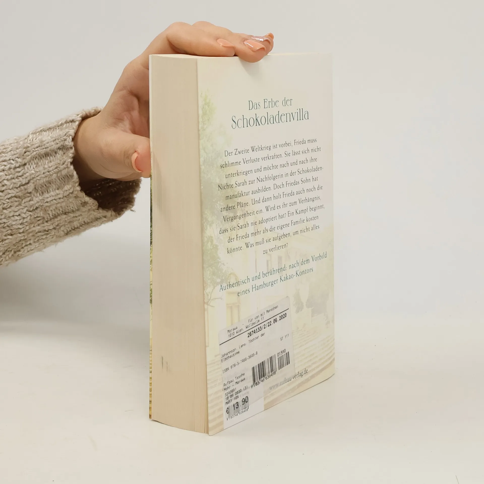Das Erbe der Schokoladenvilla. Der Zweite Weltkrieg ist vorbei, Frieda muss schlimme Verluste verkraften. Sie lässt sich nicht unterkriegen und möchte nach und nach ihre Nichte Sarah zur Nachfolgerin in der Schokoladenmanufaktur ausbilden. Doch Friedas Sohn hat andere Pläne. Und dann holt Frieda auch noch die Vergangenheit ein. Wird es ihr zum Verhängnis, dass sie Sarah nie adoptiert hat? Ein Kampf beginnt, der Frieda mehr als die eigene Familie kosten könnte. Kann sie diesen Kampf gewinnen? Authentisch und berührend: nach dem Vorbild eines Hamburger Kakao-Kontors