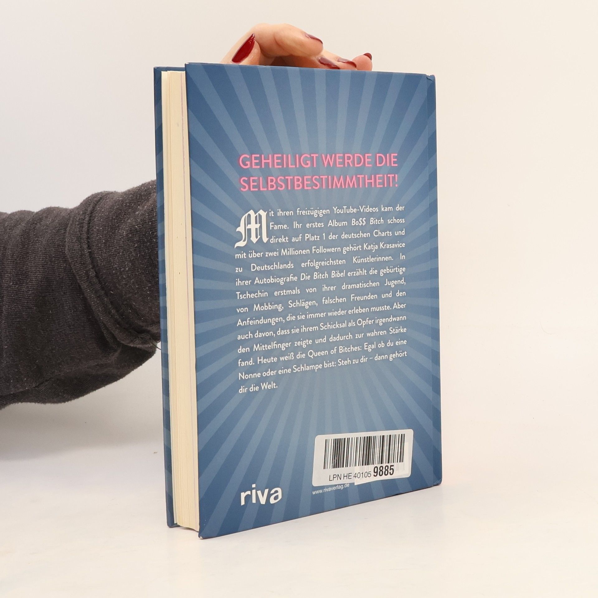 Geheiligt werde die Selbstbestimmtheit! Mit ihren freizügigen YouTube-Videos kam der Fame. Ihr erstes Album Bo$$ Bitch schoss direkt auf Platz 1 der deutschen Charts und mit über zwei Millionen Followern gehört Katja Krasavice zu Deutschlands erfolgreichsten Künstlerinnen. In ihrer Autobiografie Die Bitch Bibel erzählt die gebürtige Tschechin erstmals von ihrer dramatischen Jugend, von Mobbing, Schlägen, falschen Freunden und den Anfeindungen, die sie immer wieder erleben musste. Aber auch davon, dass sie ihrem Schicksal als Opfer irgendwann den Mittelfinger zeigte und dadurch zur wahren Stärke fand. Heute weiß die Queen of Bitches: Egal ob du eine Nonne oder eine Schlampe bist: Steh zu dir – dann gehört dir die Welt.