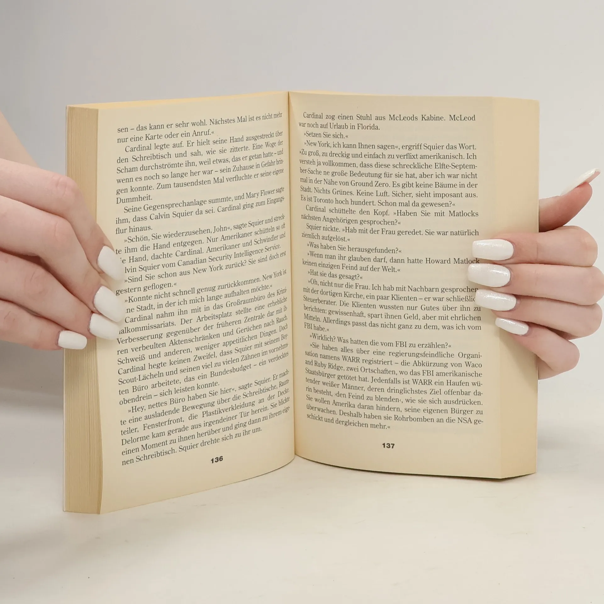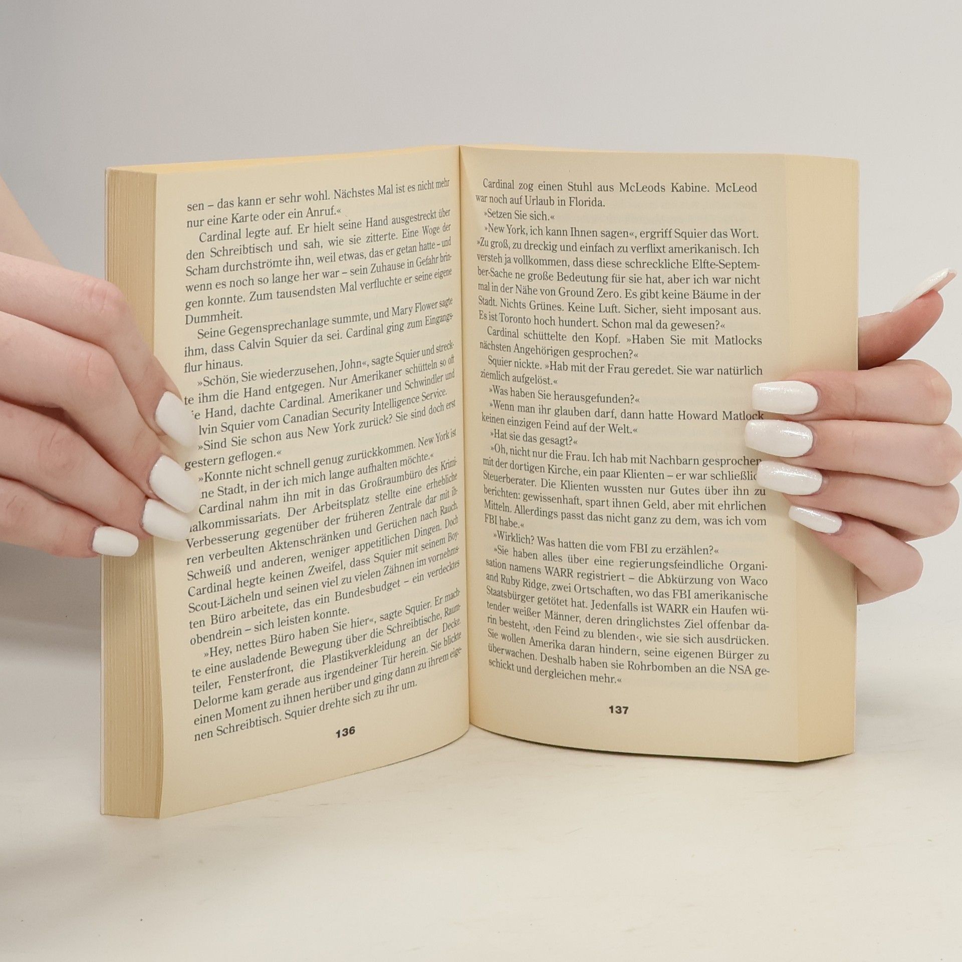 Eines Morgens, im dicksten, klebrig-feuchten Januarnebel, verschlägt es Ivan Bergeron die Sprache: Sein Hund legt ihm einen abgerissenen Arm vor die Füße. Zunächst glauben Detective John Cardinal und seine Kollegin Lise Delorme von der Polizei in Algonquin Bay, der Mann sei von Bären zerrissen worden. Doch schon bald entdeckt Cardinal in einer abgelegenen Trapperhütte weitere Körperteile. Kurze Zeit später wird im Wald eine zweite Leiche gefunden – nackt, überzogen von einer dünnen Eisschicht. Es ist die Ärztin Winter Cates. Als sich herausstellt, dass das erste Opfer amerikanischer Staatsbürger war, wird das Bild noch verworrener. Offensichtlich sind der CIA und auch der kanadische Geheimdienst mit im Spiel. Cardinal stößt auf ein gefährliches Geflecht von Spitzeln und Informanten, das bis in höchste Kreise reicht ... Ausgezeichnet von den Crime Writers of Canadaals bester Thriller des Jahres 2004