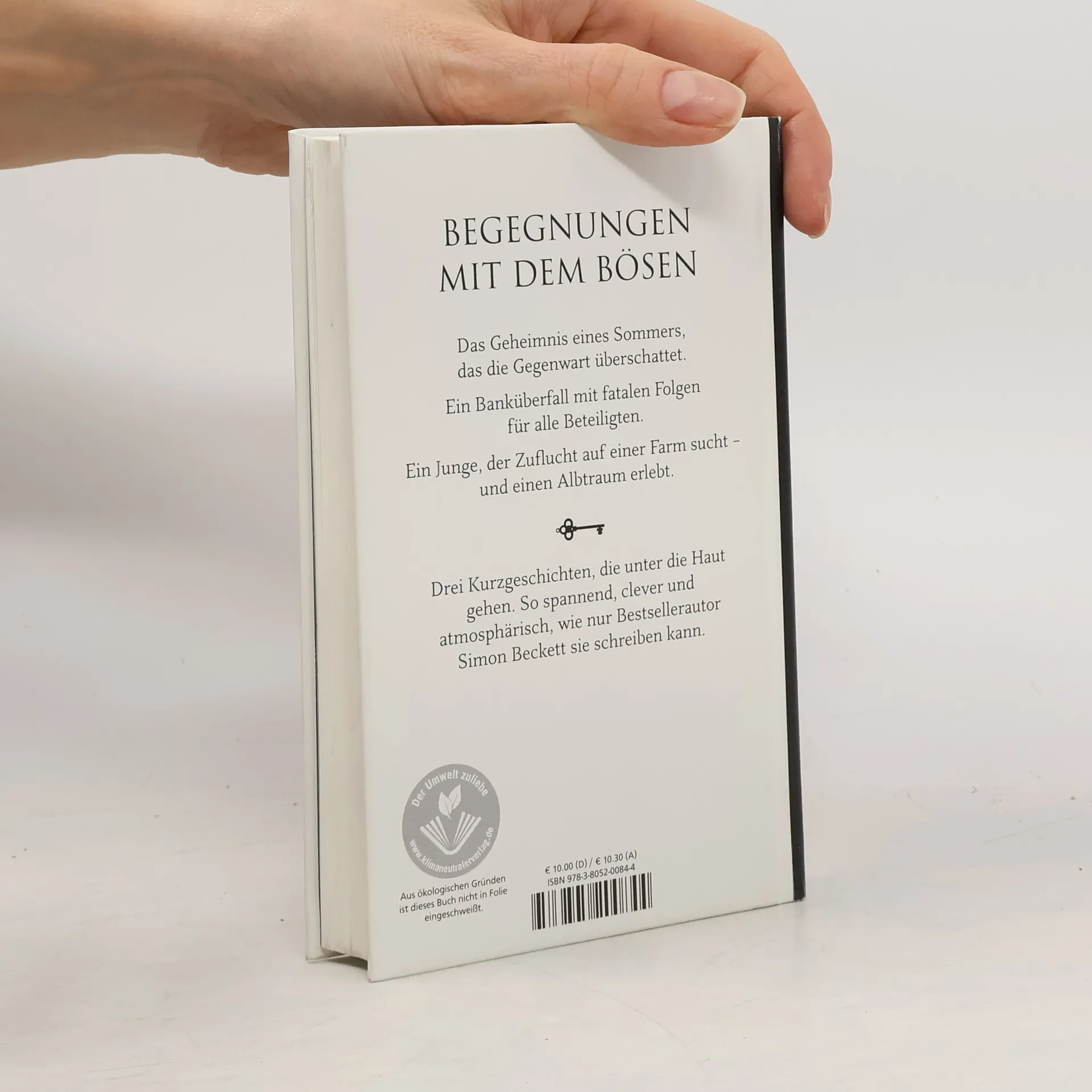 Exklusiv auf dem deutschsprachigen Buchmarkt erhältlich: Drei Krimi-Kurzgeschichten von Bestsellerautor Simon Beckett (ca. 144 S.) in wunderschöner Geschenkbuch-Ausstattung. Das Geheimnis eines Sommers, das die Gegenwart überschattet.Ein Banküberfall mit fatalen Folgen für alle Beteiligten.Ein Junge, der Zuflucht auf einer Farm sucht - und einen Albtraum erlebt. Drei dunkle Geschichten, die unter die Haut gehen. So spannend, clever und atmosphärisch, wie nur Simon Beckett sie schreiben kann.