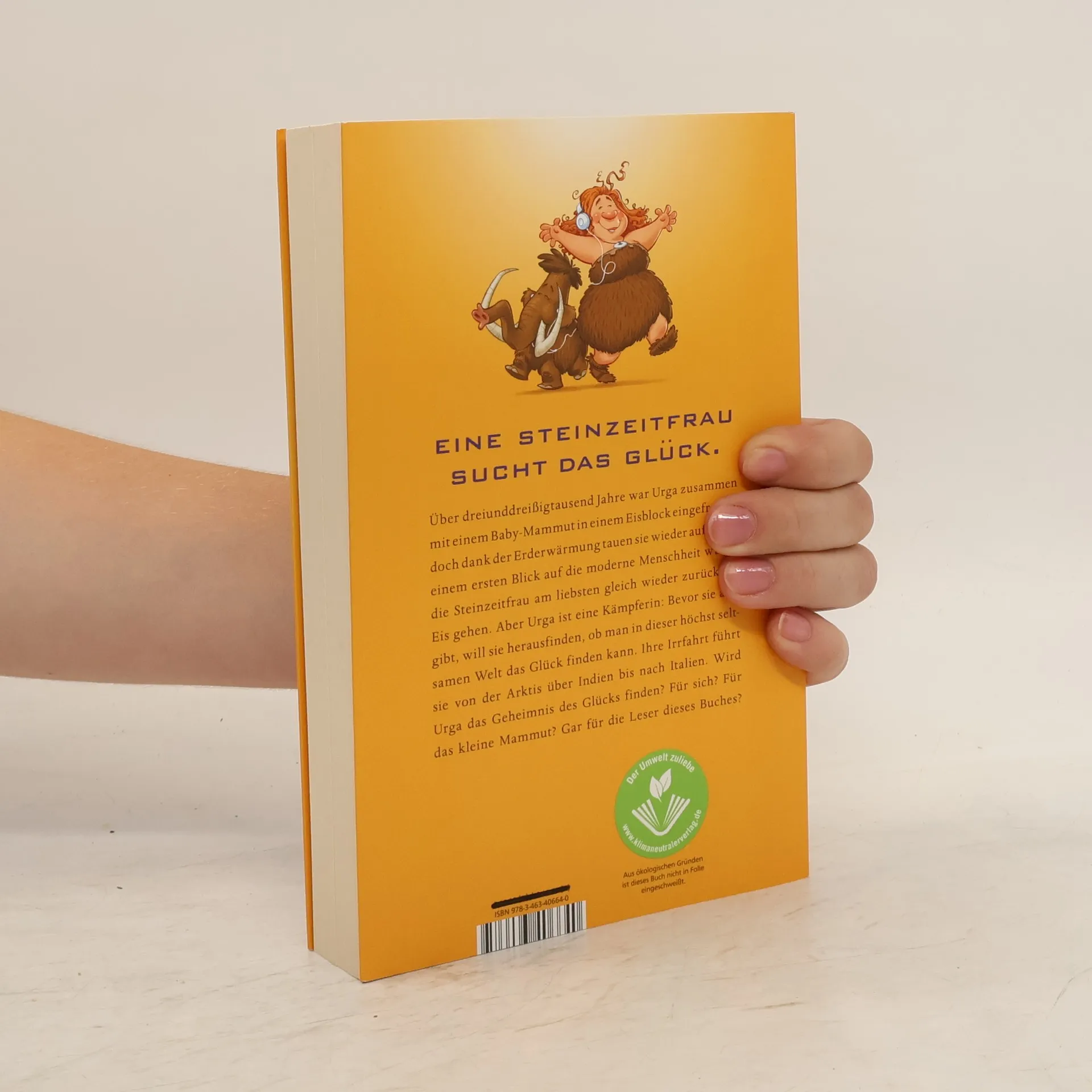 Eine Steinzeitfrau sucht das Glück Über dreiunddreißigtausend Jahre war Urga zusammen mit einem Baby-Mammut in einem Eisblock eingefroren, doch dank der Erderwärmung tauen sie wieder auf. Nach einem ersten Blick auf die moderne Menschheit würde die Steinzeitfrau am liebsten gleich wieder zurück ins Eis gehen. Aber Urga ist eine Kämpferin: Bevor sie aufgibt, will sie herausfinden, ob man in dieser höchst seltsamen Welt das Glück finden kann. Ihre Irrfahrt führt sie von der Arktis über Indien bis nach Italien. Wird Urga das Geheimnis des Glücks finden? Für sich? Für das kleine Mammut? Gar für die Leser dieses Buches?