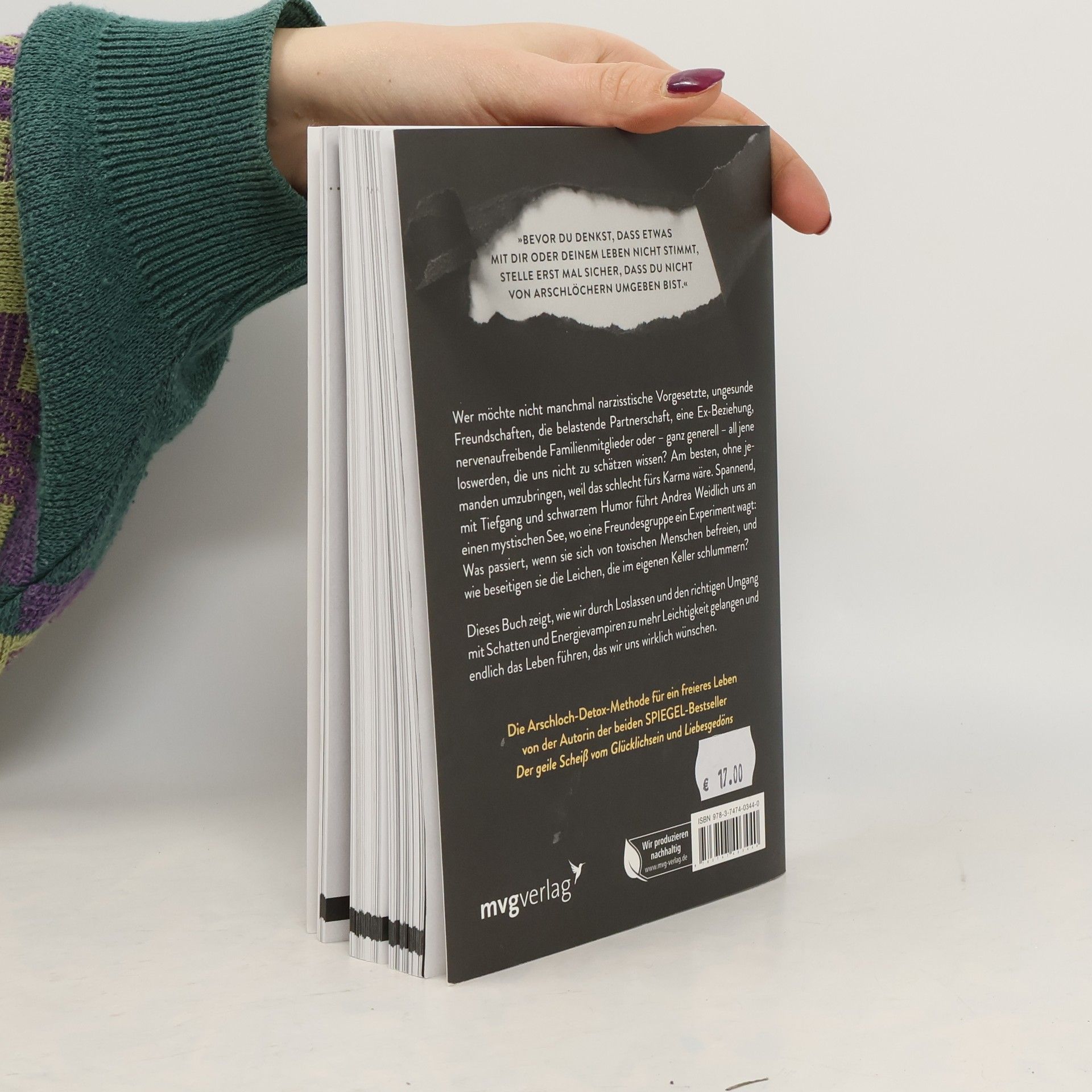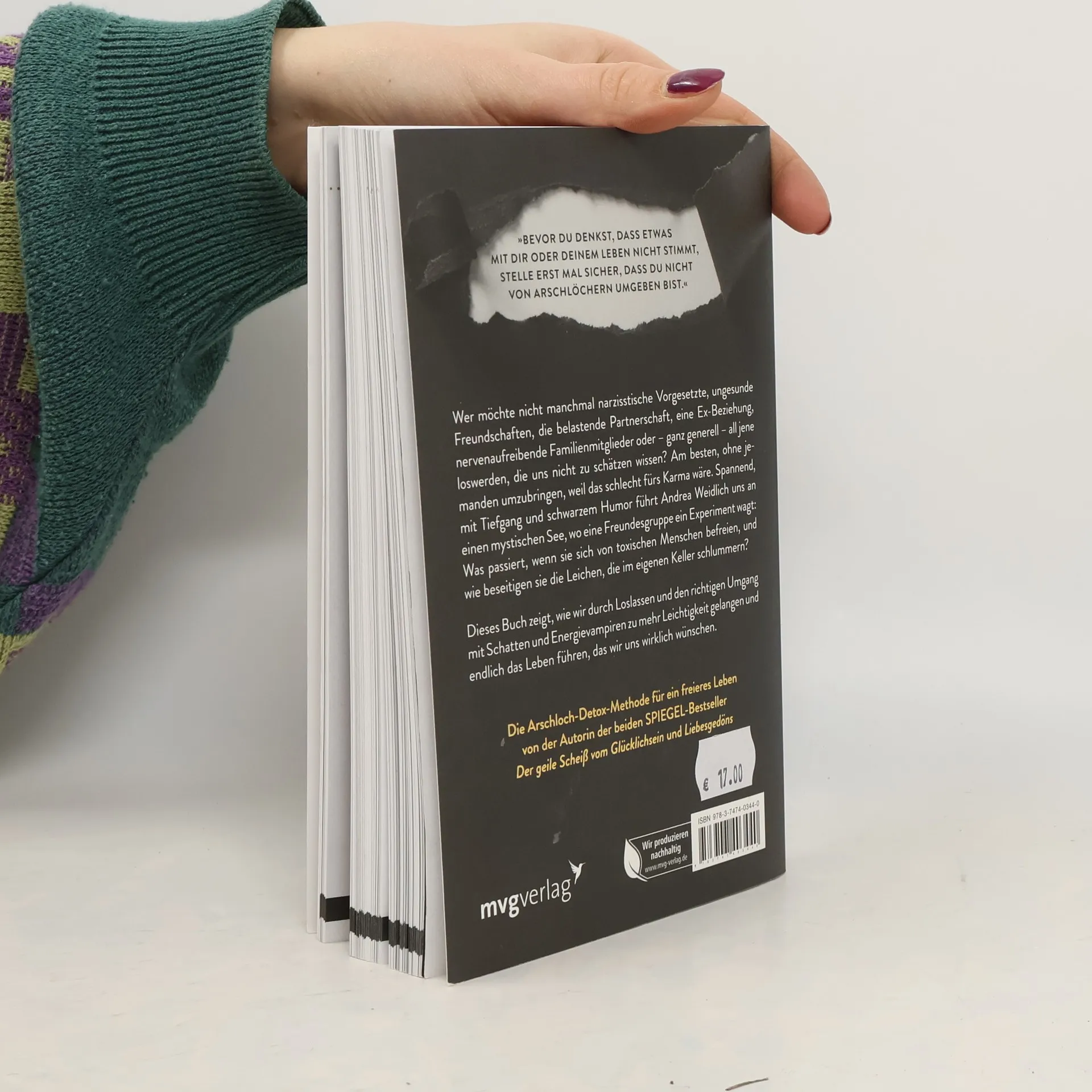 »Bevor du denkst, dass mit dir oder deinem Leben etwas nicht stimmt, stelle erst mal sicher, dass du nicht von Arschlöchern umgeben bist.« Wer möchte nicht manchmal narzisstische Vorgesetzte, ungesunde Freundschaften, die belastende Partnerschaft, eine Ex-Beziehung, nervenaufreibende Familienmitglieder oder – ganz generell – all jene loswerden, die uns nicht zu schätzen wissen? Am besten, ohne jemanden umzubringen, weil das schlecht fürs Karma wäre. Spannend, mit Tiefgang und schwarzem Humor führt Andrea Weidlich uns an einen mystischen See, wo eine Freundesgruppe ein Experiment wagt: Was passiert, wenn sie sich von toxischen Menschen befreien, und wie beseitigen sie die Leichen, die im eigenen Keller schlummern? Dieses Buch zeigt, wie wir durch Loslassen und den richtigen Umgang mit Schatten und Energievampiren zu mehr Leichtigkeit gelangen und endlich das Leben führen, das wir uns wirklich wünschen. Die Arschloch-Detox-Methode für ein freieres Leben von der Autorin der beiden SPIEGEL-Bestseller Der geile Scheiß vom Glücklichsein und Liebesgedöns.