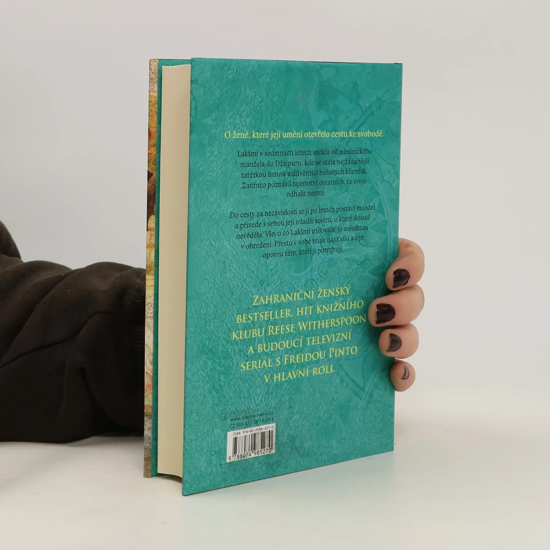 Když sedmnáctiletá Lakšmí utekla od násilnického manžela, netušila, že se od zdobení těl prostitutek dostane až k tetování královen. O třináct let později je z ní nejvyhledávanější tatérka henou v Džajpuru, kde se proslavila svými originálními obrazci a také znalostí bylinek. Získala si důvěru svých bohatých klientek, ale zatímco poznává tajemství ostatních, ta svoje odhalit nesmí. Do cesty za nezávislostí se jí po letech postaví nečekaná překážka. Vyhledá ji její manžel a není sám. Přichází s ním také temperamentní dívka Rádhá – mladší sestra, o které Lakšmí dosud nic nevěděla. Vše, co Lakšmí tak dlouho a pečlivě budovala, je najednou v ohrožení. Přesto v sobě musí najít sílu a být oporou těm, kteří ji potřebují.