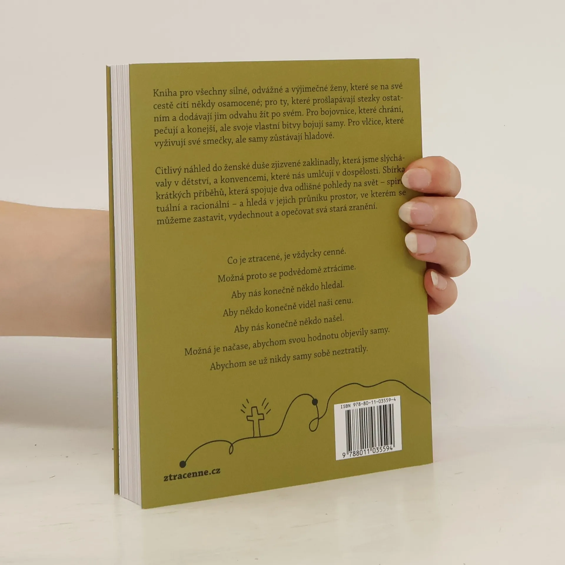 Kniha pro všechny silné, odvážné a výjimečné ženy, které se na své cestě cítí někdy osamocené; pro ty, které prošlapávají stezky ostatním a dodávají jim odvahu žít po svém. Pro bojovnice, které chrání, pečují a konejší, ale svoje vlastní bitvy bojují samy. Pro vlčice, které vyživují své smečky, ale samy zůstávají hladové. Citlivý náhled do ženské duše zjizvené zaklínadly, která jsme slýchávaly v dětství, a konvencemi, které nás umlčují v dospělosti. Sbírka krátkých příběhů, která spojuje dva odlišné pohledy na svět – spirituální a racionální – a hledá v jejich průniku prostor, ve kterém se můžeme zastavit, vydechnout a opečovat svá stará zranění. Co je ztracené, je vždycky cenné. Možná proto se podvědomě ztrácíme. Aby nás konečně někdo hledal. Aby někdo konečně viděl naši cenu. Aby nás konečně někdo našel. Možná je načase, abychom svou hodnotu objevily samy. . Abychom se už nikdy samy sobě neztratily.