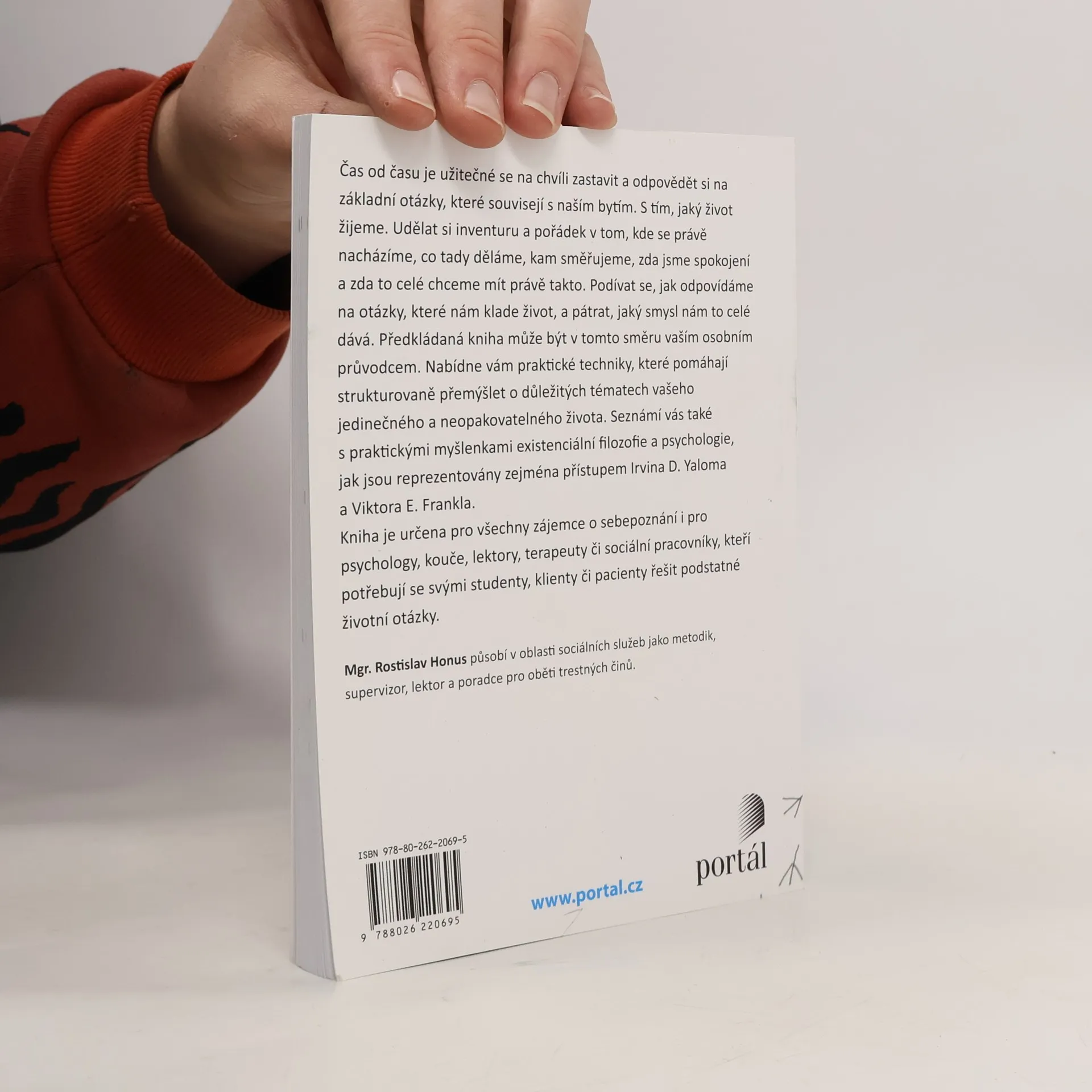 Čas od času je užitečné se na chvíli zastavit a odpovědět si na základní otázky, které souvisejí s naším bytím. S tím, jaký život žijeme. Udělat si inventuru a pořádek v tom, kde se právě nacházíme, co tady děláme, kam směřujeme, zda jsme spokojení a zda to takto chceme mít. Podívat se, jak odpovídáme na otázky, které nám klade život, a pátrat, jaký smysl nám to celé dává. Předkládaná kniha může být v tomto směru vaším osobním průvodcem. Nabídne vám praktické techniky, které pomáhají strukturovaně přemýšlet o důležitých otázkách vašeho jedinečného a neopakovatelného života. Seznámí vás také s praktickými myšlenkami existenciální filozofie a psychologie, jak jsou reprezentovány zejména přístupem Irvina D. Yaloma a Viktora E. Frankla. Kniha je určena pro všechny zájemce o sebepoznání i pro psychology, kouče, lektory, terapeuty či sociální pracovníky, kteří potřebují se svými studenty, klienty či pacienty řešit podstatné životní otázky. Mgr. Rostislav Honus působí v oblasti sociálních služeb jako metodik, supervizor, lektor a poradce pro oběti trestných činů.