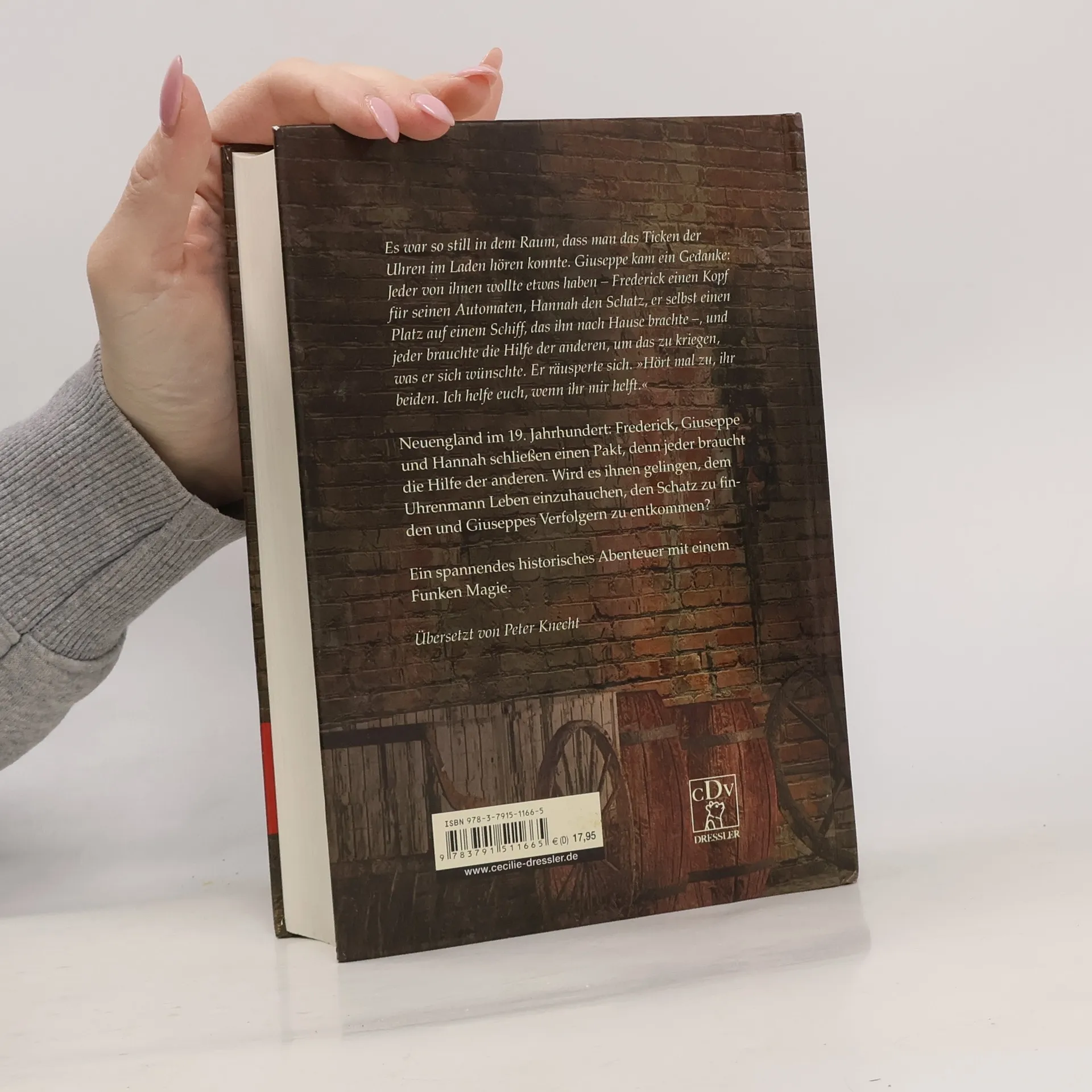 Tauchen Sie ein in die Welt, in der Träume wahr werden! Neuengland, 19. Jahrhundert: Giuseppe, Frederick und Hannah schließen einen Pakt, denn jeder braucht die Hilfe der anderen. Der Straßenmusikant Giuseppe möchte mit seiner magischen Geige zurück nach Italien, wird jedoch von dem brutalen Patrone Stephano daran gehindert. Frederick baut heimlich einen menschlichen Automaten, der von einem Uhrwerk angetrieben wird. Und Hannah hat von einem Schatz gehört, der sie von der Armut erlösen würde. Wird es ihnen gemeinsam gelingen, dem Uhrenmann Leben einzuhauchen, Hannas Familie zu helfen und Giuseppes Verfolgern zu entkommen? Ein fesselnder Abenteuerroman mit Dickens-Atmosphäre - um Freundschaft, Geheimnisse und die Sehnsucht nach Freiheit und Glück.