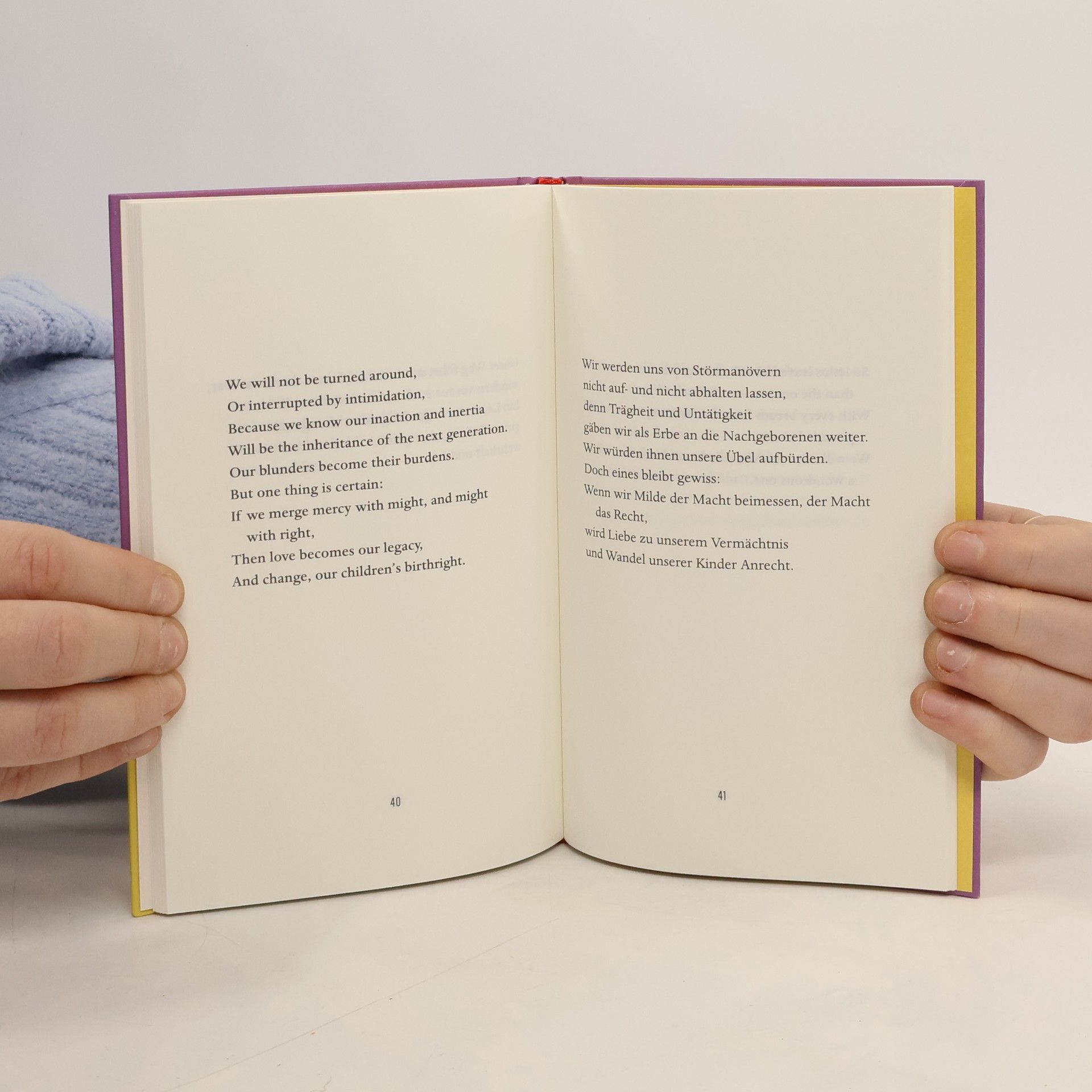 Mit einem Vorwort von Oprah Winfrey Mit dem Gedicht »The Hill We Climb – Den Hügel hinauf«, das Amanda Gorman am 20. Januar 2021 bei der Inauguration des 46. Präsidenten der Vereinigten Staaten von Amerika, Joe Biden, vortrug, schenkte eine junge Lyrikerin den Menschen auf der ganzen Welt eine einzigartige Botschaft der Hoffnung und Zuversicht.  Am 20. Januar 2021 wurde die erst zweiundzwanzigjährige Amanda Gorman zur sechsten und jüngsten Dichterin, die bei der Vereidigung eines US-amerikanischen Präsidenten ein Gedicht vortrug. »The Hill We Climb – Den Hügel hinauf« ist jetzt in der autorisierten zweisprachigen Fassung als kommentierte Sonderausgabe erhältlich.
