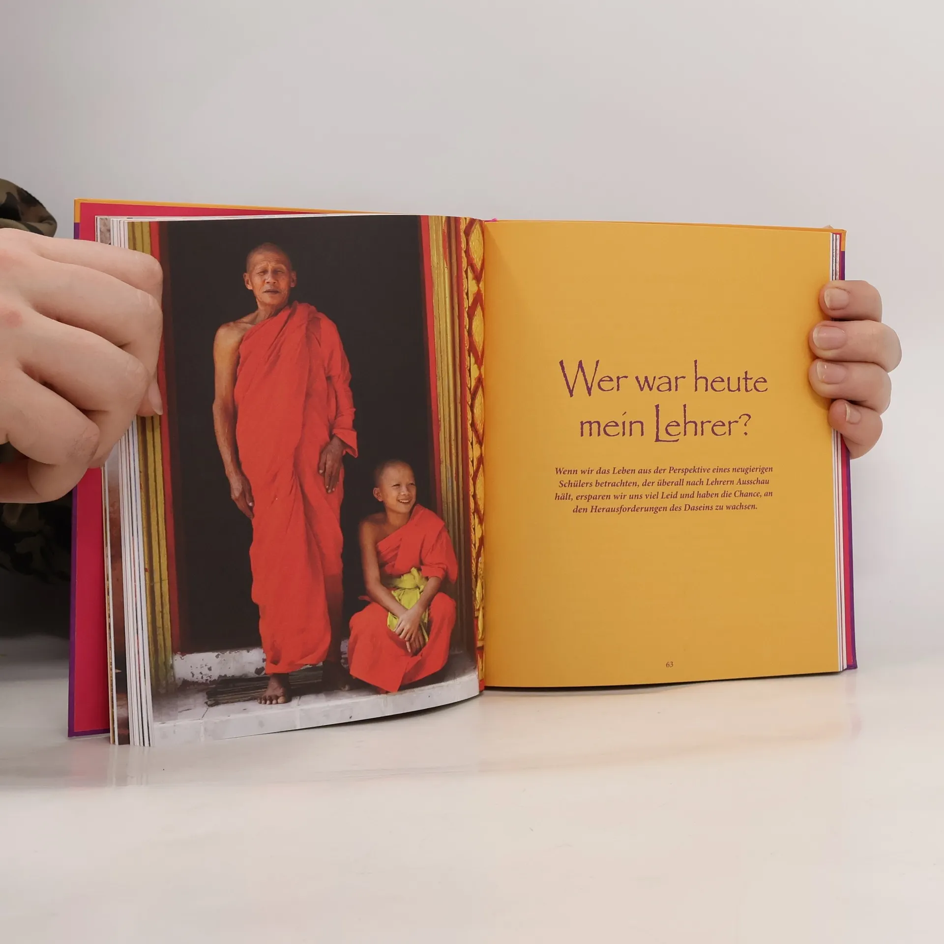 Drei buddhistische Fragen führen zum Glück. 1. Wofür bin ich heute dankbar? Diese Frage lenkt die Aufmerksamkeit auf die Geschenke, die uns das Leben täglich macht und schult so den Blick für das Positive. 2. Was konnte ich heute schenken? Hier geht es um die eigene Großzügigkeit bzw. die Fähigkeit, unser Herz zu öffnen und uns mitfühlend mit anderen zu verbinden. Und 3. Wer war heute mein Lehrer? Diese Frage verwandelt Probleme in Herausforderungen, Hindernisse in Lernaufgaben. Sie lässt uns auch schwierige Lebenssituationen annehmen und mutig voranschreiten. So können wir wachsen und unser Potenzial entwickeln. Somit lassen uns Buddhas drei Fragen bewusster und achtsamer durchs Leben gehen. Vertieft wird dieser Prozess durch die Tagebuch-Funktion des Buches. Wer jeden Tag seine Antworten notiert, der kann in Momenten des Zweifels, des Haderns oder gar Scheiterns auf die im Tagebuch dokumentierten Ressourcen zurückgreifen und daraus neue Kraft schöpfen.