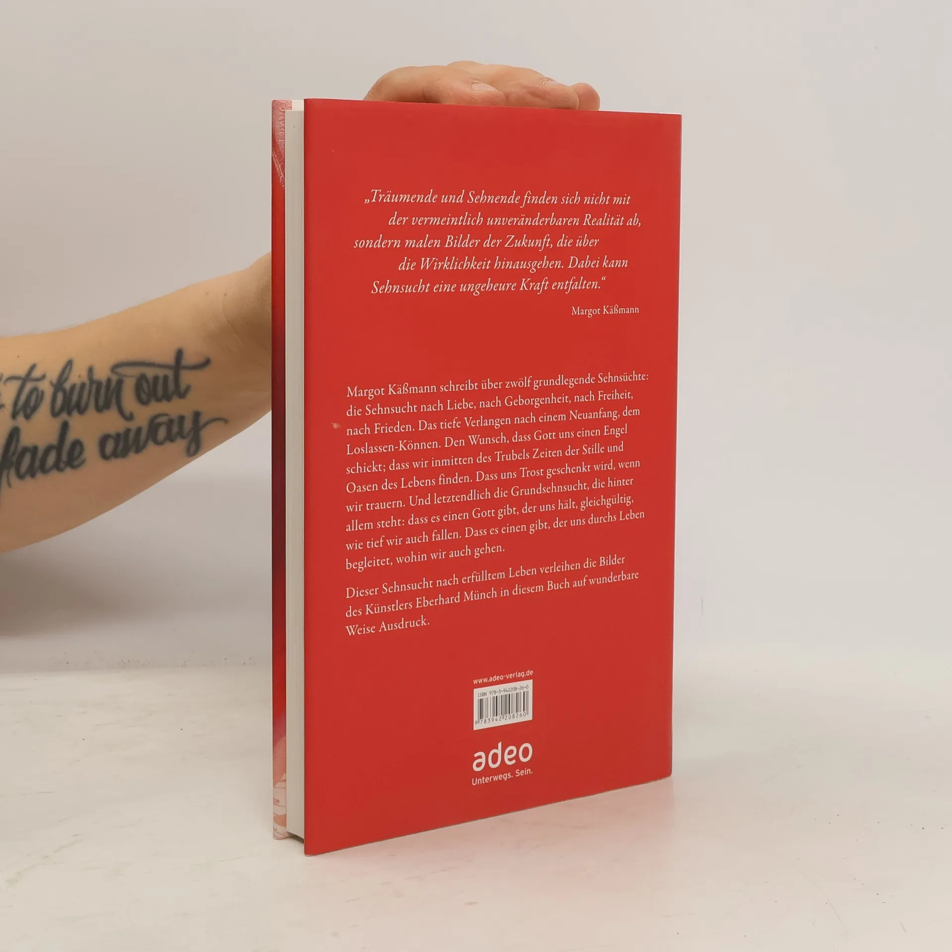 Margot Käßmann schreibt über zwölf grundlegende Sehnsüchte: die Sehnsucht nach Liebe, nach Geborgenheit, nach Freiheit, nach Frieden. Das tiefe Verlangen nach einem Neuanfang, dem Loslassen-Können. Den Wunsch, dass Gott uns einen Engel schickt; dass wir inmitten des Trubels Zeiten der Stille und Oasen des Lebens finden. Dass uns Trost geschenkt wird, wenn wir trauern. Und letztendlich die Grundsehnsucht, die hinter allem steht: dass es einen Gott gibt, der uns hält, egal, wie tief wir auch fallen. Dass es einen gibt, der uns durchs Leben begleitet, wohin wir auch gehen. Die im Buch enthaltenen Bilder des Künstlers Eberhard Münch, dessen Werk Margot Käßmann besonders schätzt, spiegeln das Verlangen nach einer anderen Welt. „Die Sehnenden sind wie die Träumenden. Sie denken über Grenzen hinaus. Sie malen Bilder, die über die Wirklichkeit hinausgehen. Sie finden sich nicht ab mit der vermeintlich unveränderbaren Realität. Dabei kann Sehnsucht eine ungeheure Kraft entfalten.“ Margot Käßmann