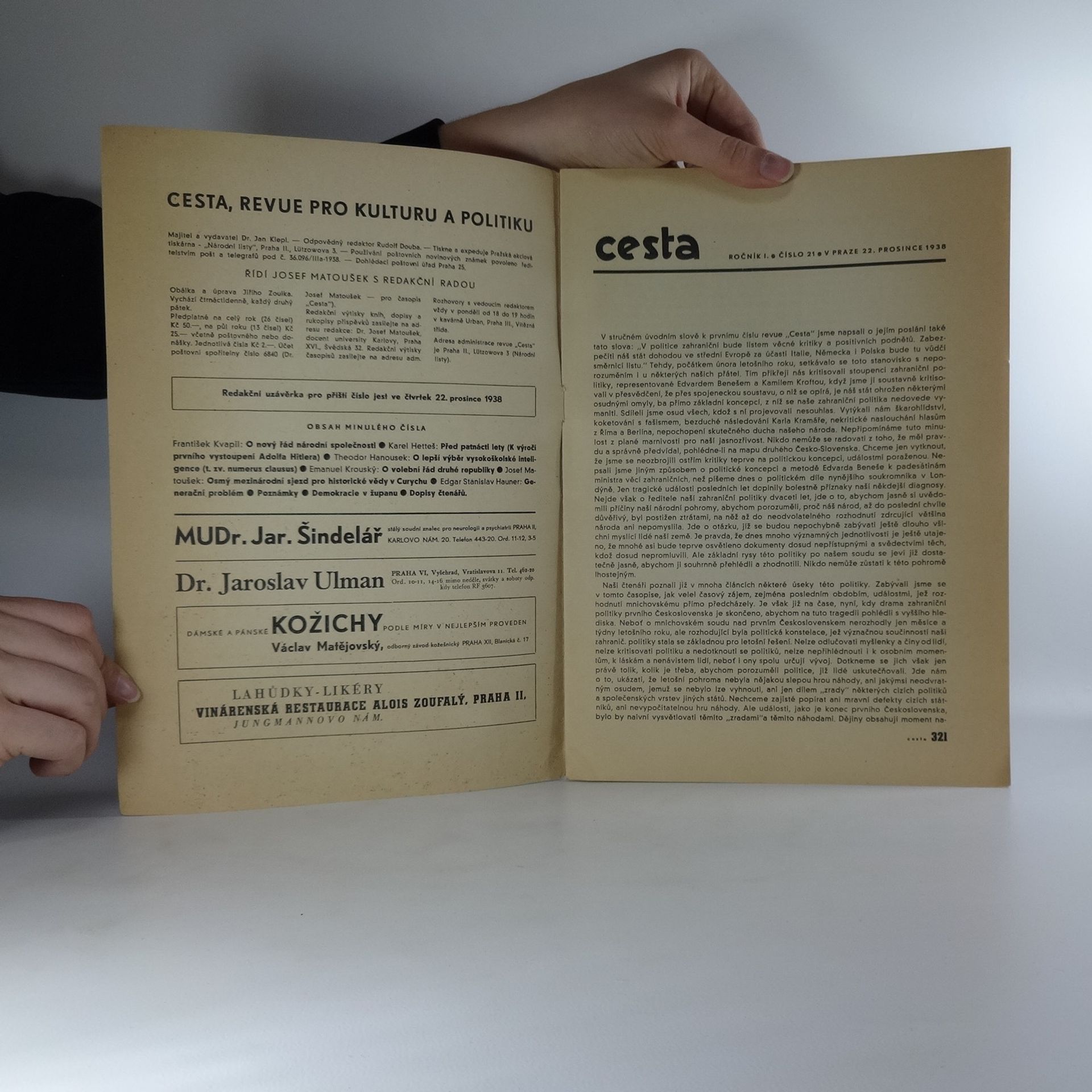 Cesta. Revue pro kulturu a politiku. Ročník I. Číslo 21., Autorenkollektiv