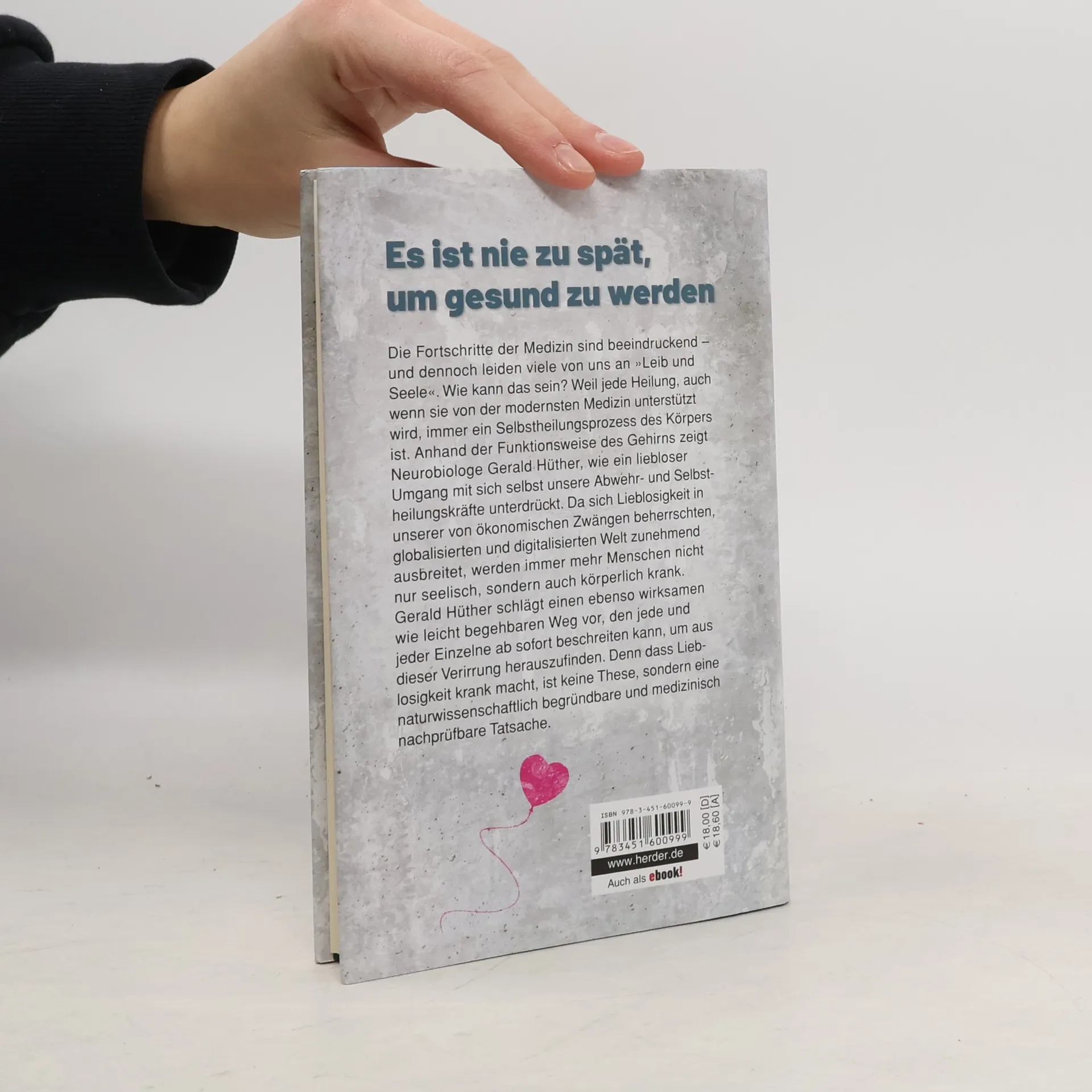 Die Fortschritte der Medizin sind beeindruckend – und dennoch leiden viele von uns an „Leib und Seele“. Wie kann das sein? Gerald Hüther, Gehirnforscher, Vorstand der Akademie für Potentialentfaltung und Bestsellerautor geht der Frage nach, weshalb uns das beste und teuerste Gesundheitssystem der Welt nicht gesünder macht: Weil jeder Heilungsprozess, auch wenn er von der modernsten Medizin unterstützt wird, letztlich immer ein Selbstheilungsprozess des Körpers ist. Anhand der Funktionsweise des Gehirns macht der Autor auf bemerkenswert einfache und überzeugende Weise verständlich, wie sehr unsere Selbstheilungsfähigkeit durch liebloses Verhalten sich selbst und anderen gegenüber unterdrückt wird. Weil sich Lieblosigkeit in unserer, von ökonomischen Zwängen beherrschten, globalisierten und digitalisierten Welt zunehmend ausbreitet, werden immer mehr Menschen nicht nur seelisch sondern auch körperlich krank. Gerald Hüther schlägt einen ebenso wirksamen wie leicht begehbaren Weg vor, den jede und jeder Einzelne ab sofort beschreiten kann, um aus dieser Verirrung herauszufinden.