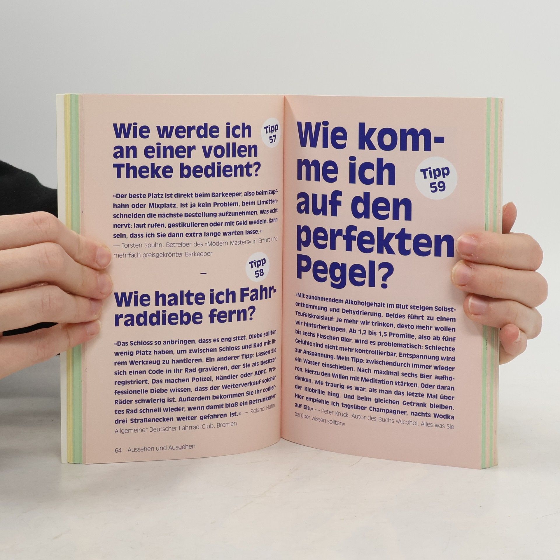 Nach dem Riesenerfolg von »Unnützes Wissen« jetzt sehr nützliches Wissen von NEON! Nahezu täglich ist irgendwo zu lesen, wie man Männer erwachsen, Frauen rum-, einen flachen Bauch hin- oder Rotweinflecken rauskriegt. Aber Lösungen für die wahren Probleme des Alltags waren bis jetzt Mangelware. Bis jetzt, denn NEON verrät 200 verblüffende und sehr nützliche Tricks, die wirklich weiterhelfen: Wie man Fruchtfliegen loswird, unpeinliche Gedichte schreibt, Lampenfieber besiegt, versalzenes Essen rettet, Sexpannen vermeidet oder jemanden auf dem Handy anruft, ohne mit ihm reden zu müssen. Das Besondere an diesen Tricks: Der Leser kennt sie größtenteils noch nicht, sie funktionieren wirklich und sie stammen aus den unterschiedlichsten Lebensbereichen: Haushalt & Küche; Aussehen & Ausgehen; Fremde, Freunde & Sex; Beruf, Büro & Geld; Gesundheit & Medizin; Sport & Reise. Nach dem Riesenerfolg der Kult-Rubrik „Unnützes Wissen“ gibt es jetzt absolut nützliches Wissen von NEON! Ausstattung: duchg. 4-farbig