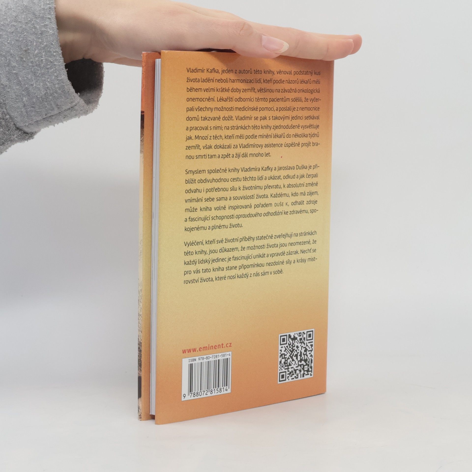 Vladimír Kafka věnoval podstatný kus života ladění nebo-li harmonizaci lidí, kteří podle názorů lékařů měli během velmi krátké doby zemřít, většinou na závažná onkologická onemocnění. Lékařští odborníci těmto pacientům sdělili, že vyčerpali všechny možnosti medicínské pomoci, a poslali je z nemocnice domů tak zvaně dožít. Vladimír se pak s těmito jedinci setkával a pracoval s nimi. Na stránkách této knihy zjednodušeně vysvětluje jak. Mnozí z těch, kteří měli podle mínění lékařů do několika týdnů zemřít, však dokázali za Vladimírovy asistence úspěšně projít branou smrti tam a zpět a žijí dál mnoho let. Smyslem společné knihy Vladimíra Kafky a Jaroslava Duška je přiblížit obdivuhodnou cestu těchto lidí a ukázat, odkud a jak čerpali odvahu i potřebnou sílu k životnímu převratu, k absolutní změně vnímání sebe sama a souvislostí života. Vyléčení, kteří své životní příběhy statečně zveřejňují na stránkách této knihy, jsou důkazem, že možnosti života jsou neomezené, že každičký lidský jedinec je fascinující unikát a - vpravdě zázrak.