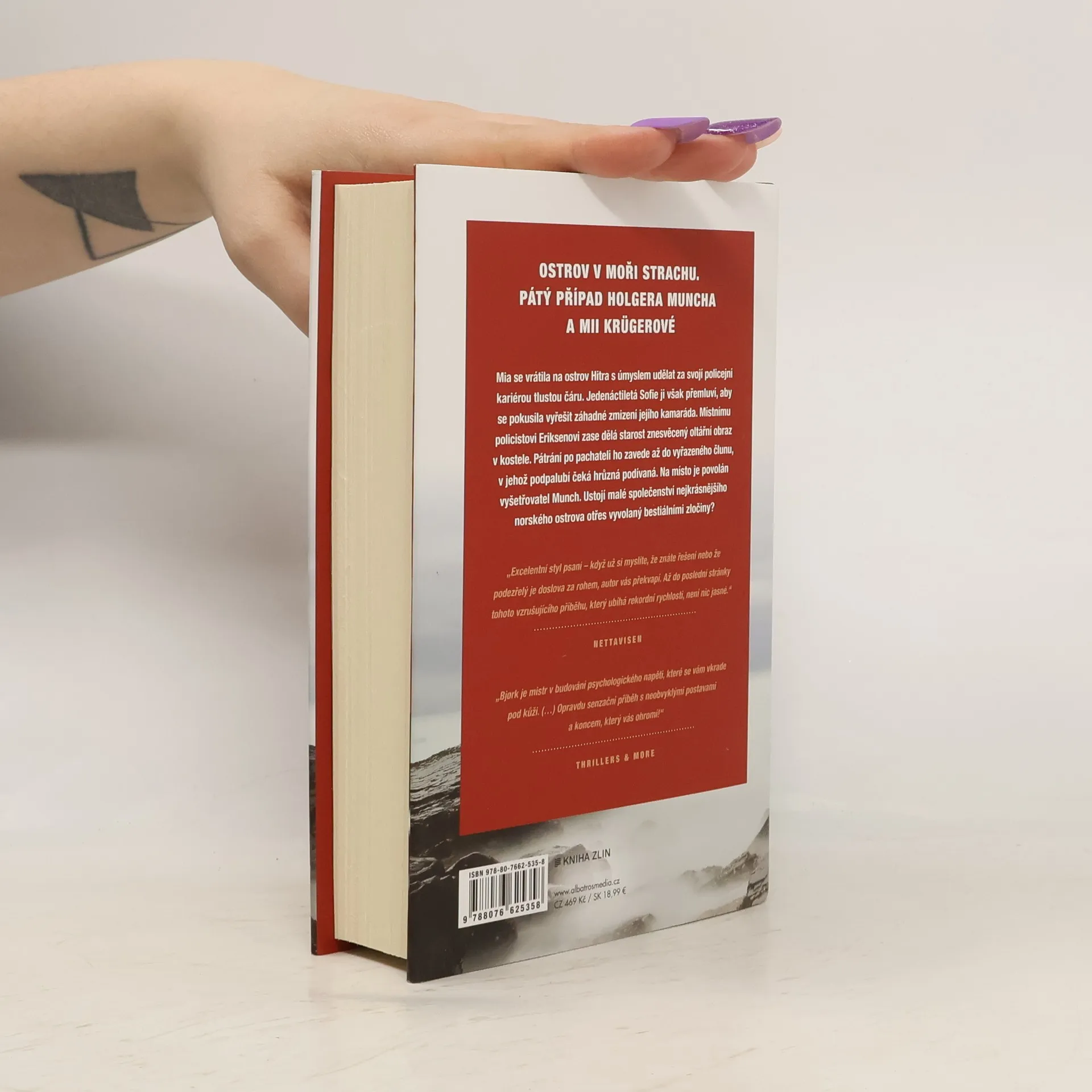 Ostrov v moři strachu. Pátý případ Holgera Muncha a Mii Krügerové.Mia se vrátila na ostrov Hitra s úmyslem udělat za svojí policejní kariérou tlustou čáru. Jedenáctiletá Sofie ji však přemluví, aby se pokusila vyřešit záhadné zmizení jejího kamaráda. Místnímu policistovi Eriksenovi zase dělá starost znesvěcený oltářní obraz v kostele. Pátrání po pachateli ho zavede až do vyřazeného člunu, v jehož podpalubí čeká hrůzná podívaná. Na místo je povolán vyšetřovatel Munch. Ustojí malé společenství nejkrásnějšího norského ostrova otřes vyvolaný bestiálními zločiny?